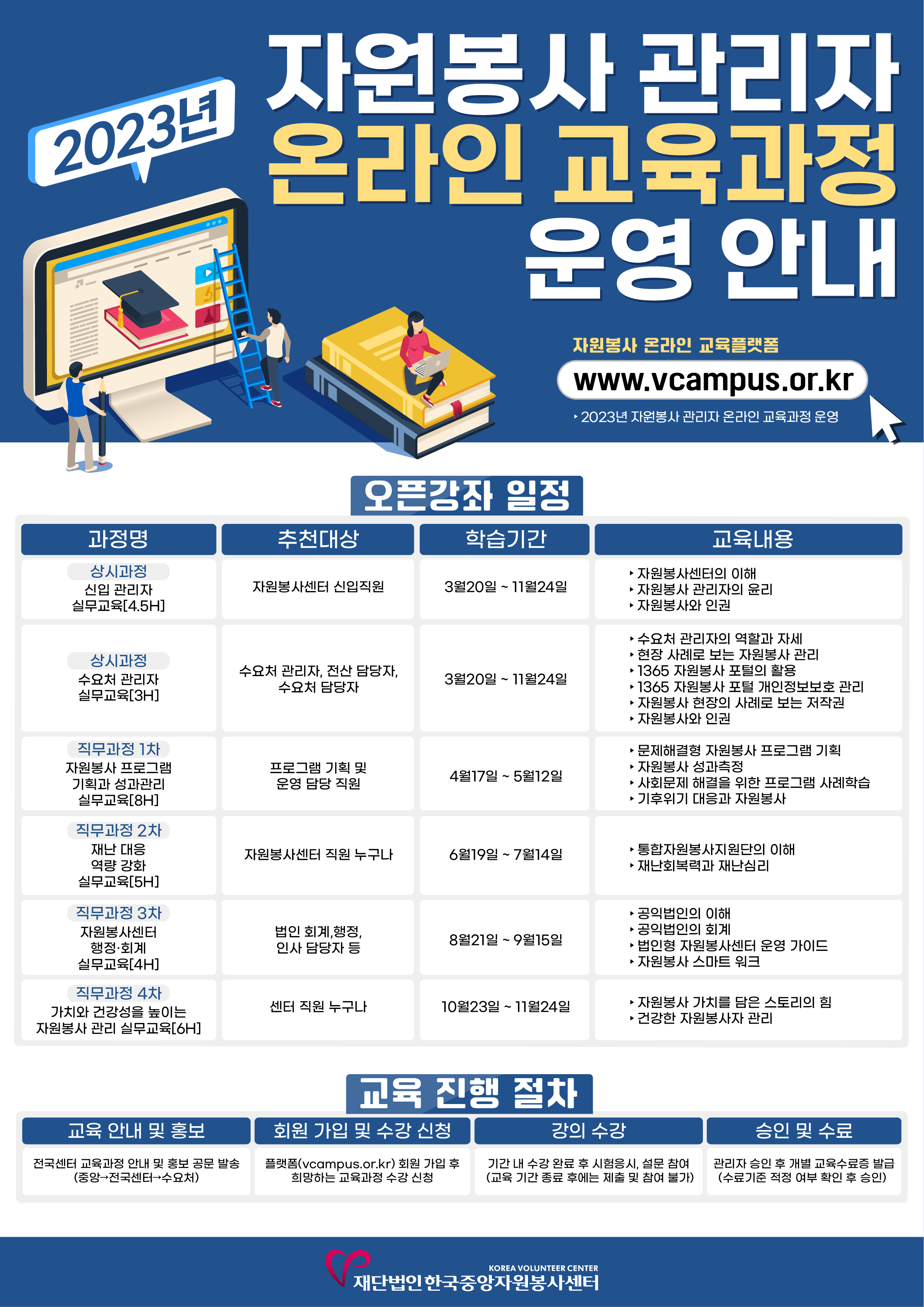공지사항 [공지] 2023년 자원봉사 관리자 온라인 교육과정 운영 안내 2023.03.20 관리자 이전글 [공지] 재난현장 통합자원봉사지원단 직무교육(실무자) 목록 다음글 [공지] (공고 제2023-004호) 사회문제 해결형 자원봉사 지원사업 『스케일업(Scale-up) 프로젝트』 공모 공고
