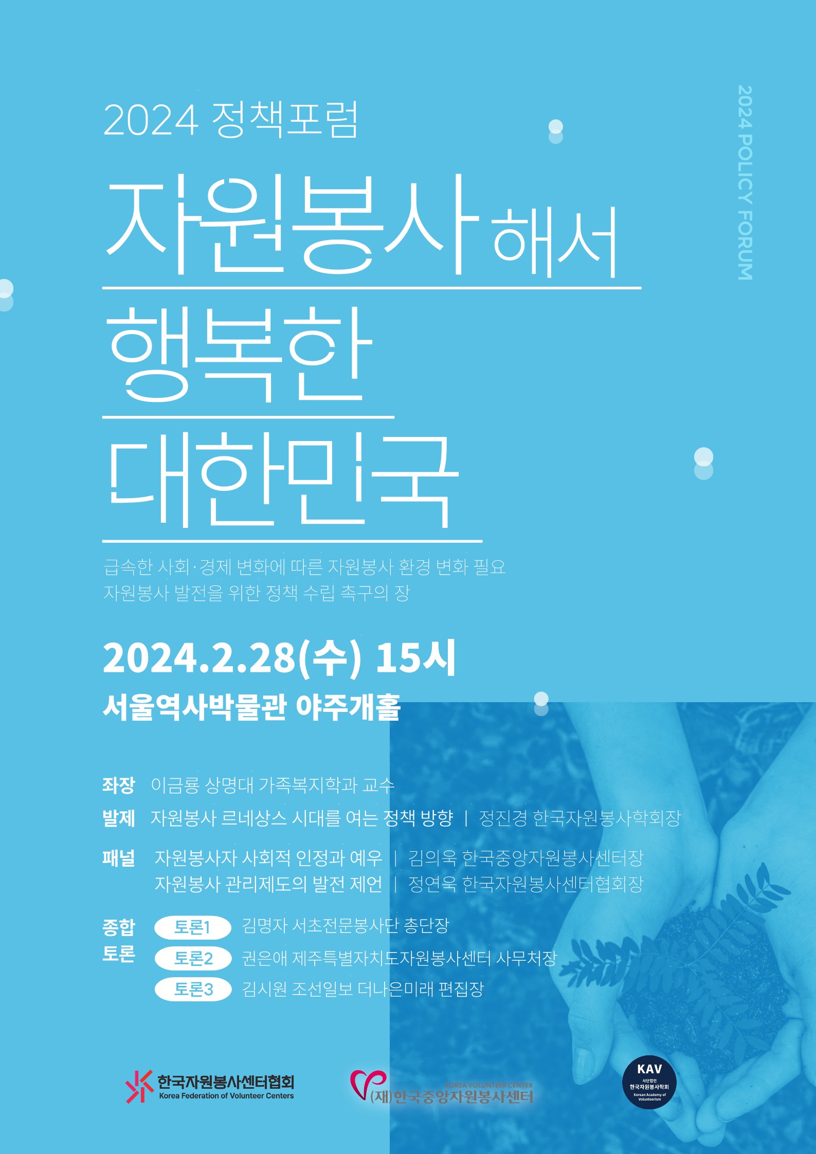 [공지] 2024 자원봉사 정책포럼 [자원봉사해서 행복한 대한민국] 개최 안내