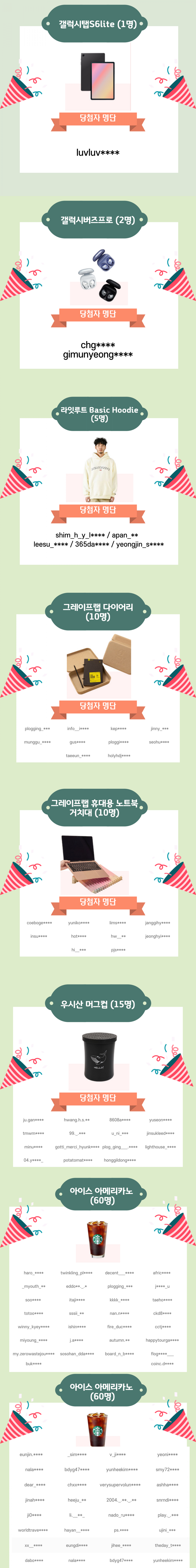 당첨자 분들께서는 인스타그램 DM을 확인하셔서 경품발송을 위한 정보입력과 개인정보 활용동의를 해주시길 바랍니다.