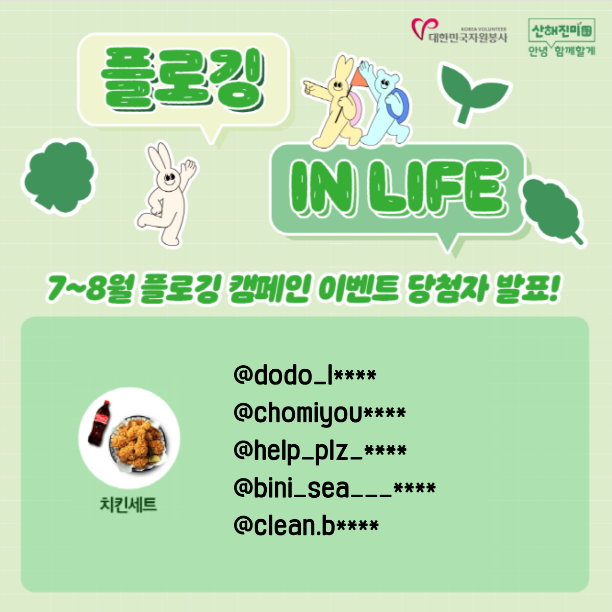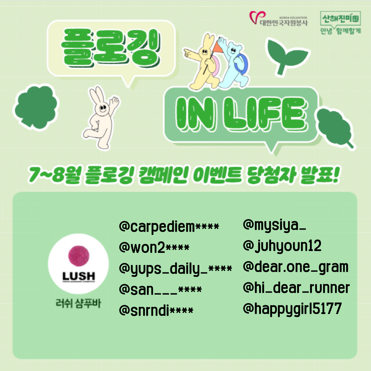 당첨자 분들께서는 인스타그램 DM을 확인하셔서 경품발송을 위한 정보입력과 개인정보 활용동의를 해주시길 바랍니다.