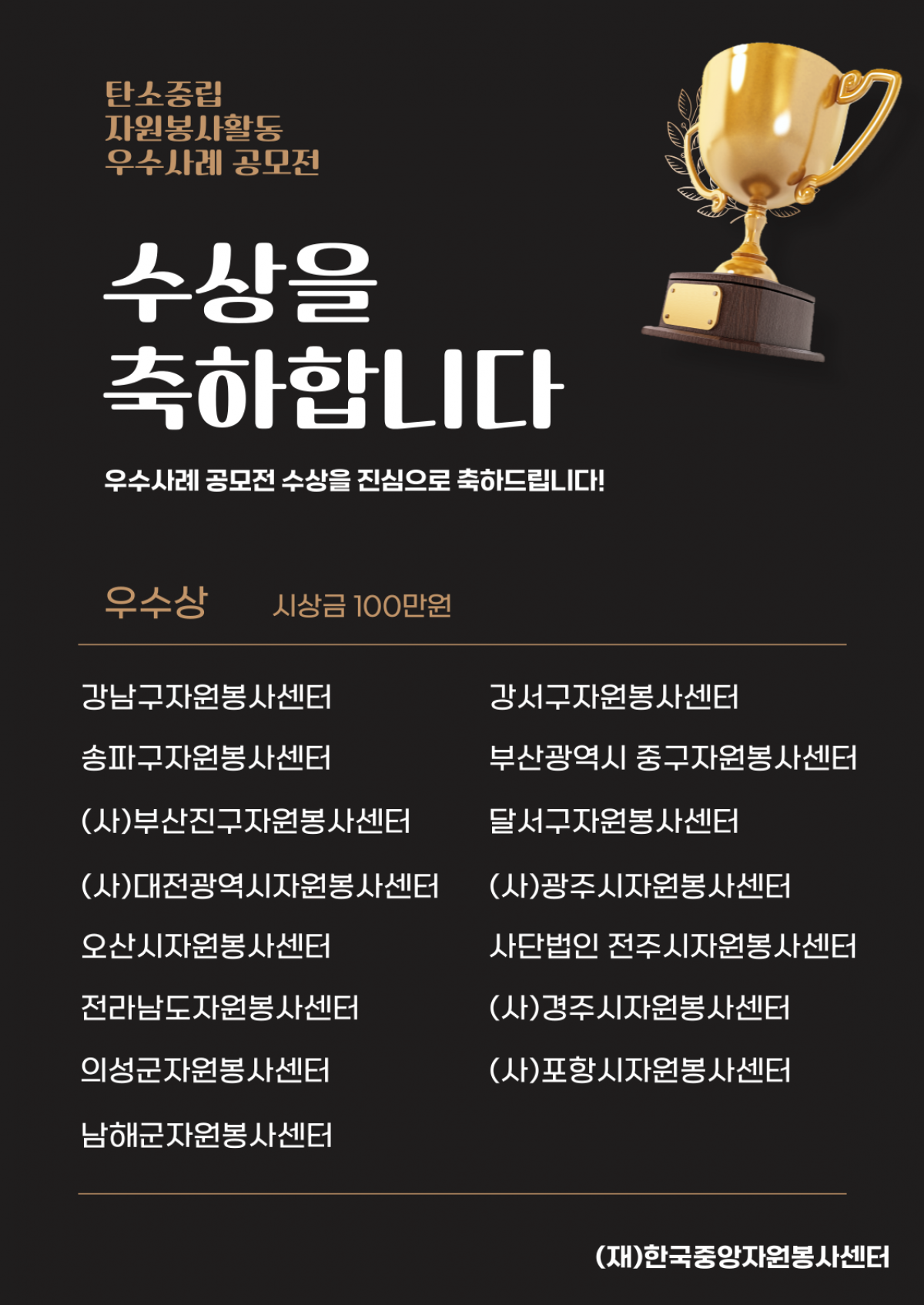 수상하신 기관에 축하의 인사를 전합니다.