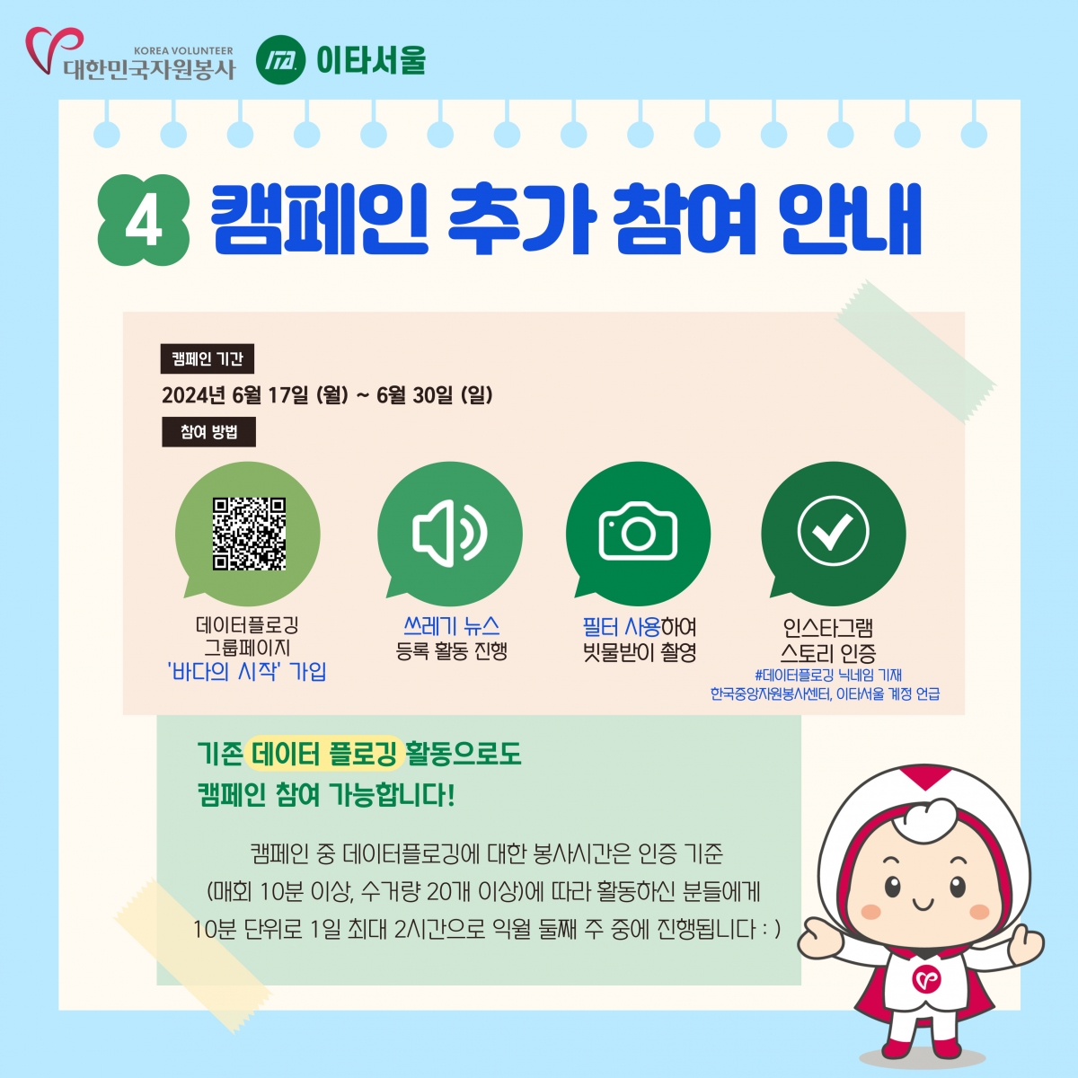 공지사항 [공지] 빗물받이에서 시작되는 깨끗한 바다, 바다의 시작 캠페인 추가 참여방법 안내 2024.06.18 관리자 이전글 [공지] 안내 목록 다음글 [공지] 자원봉사아카이브 개선을 위한 설문조사