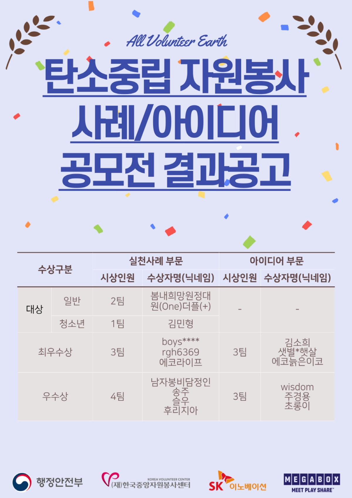 공지사항 2021 기후위기 대응 자원봉사 활동사례/아이디어 공모전 결과 안내 2023.08.16 관리자 이전글 나눔은 핫하게! 지구는 쿨하게! All volunteer X Eearth 캠페인 안내 목록 다음글 2021 안녕! 산해진미 함께할게 캠페인 3차(11월) 참여가이드