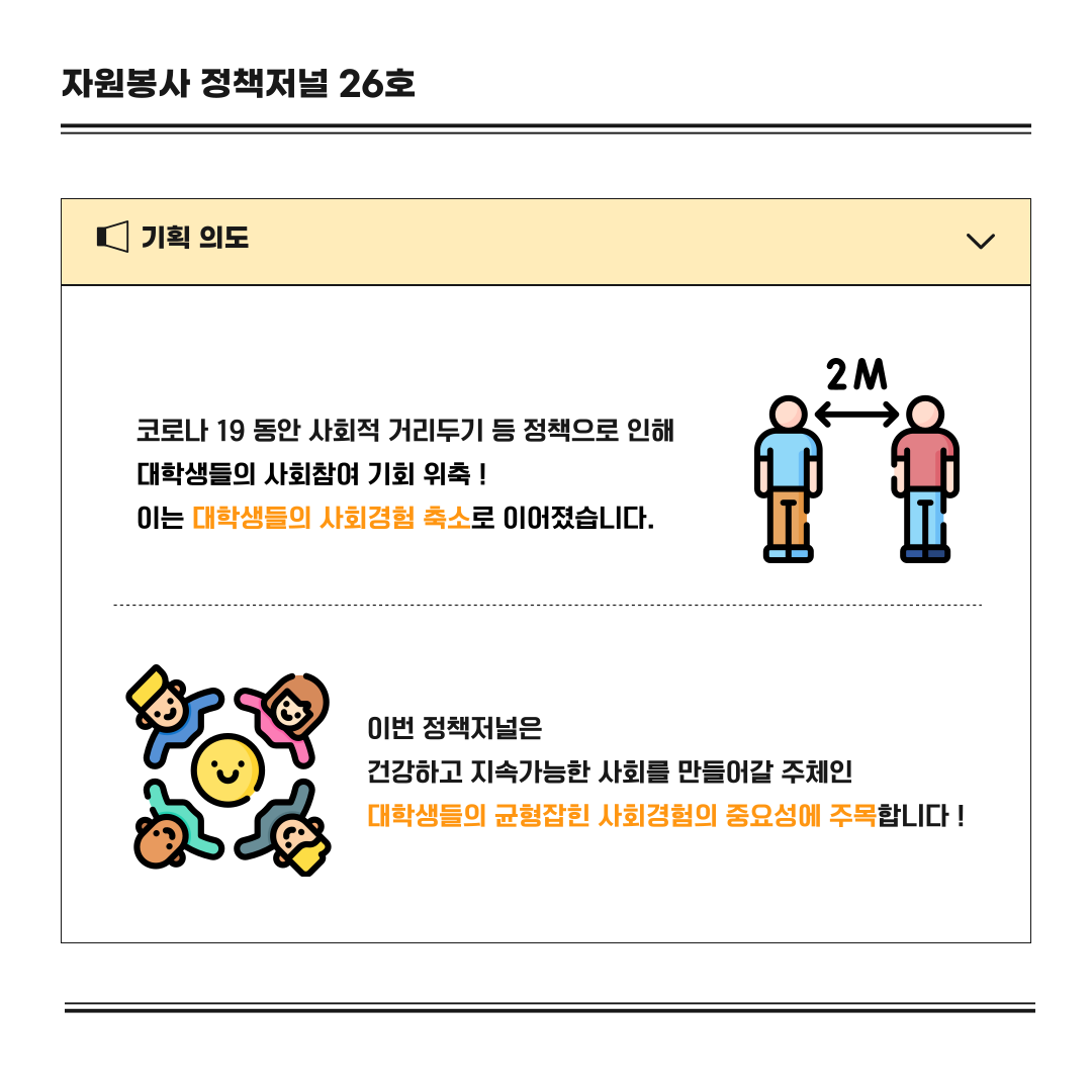 26호 저널의 주제는 '대학생 봉사활동, 미래의 힘이 되다'입니다.