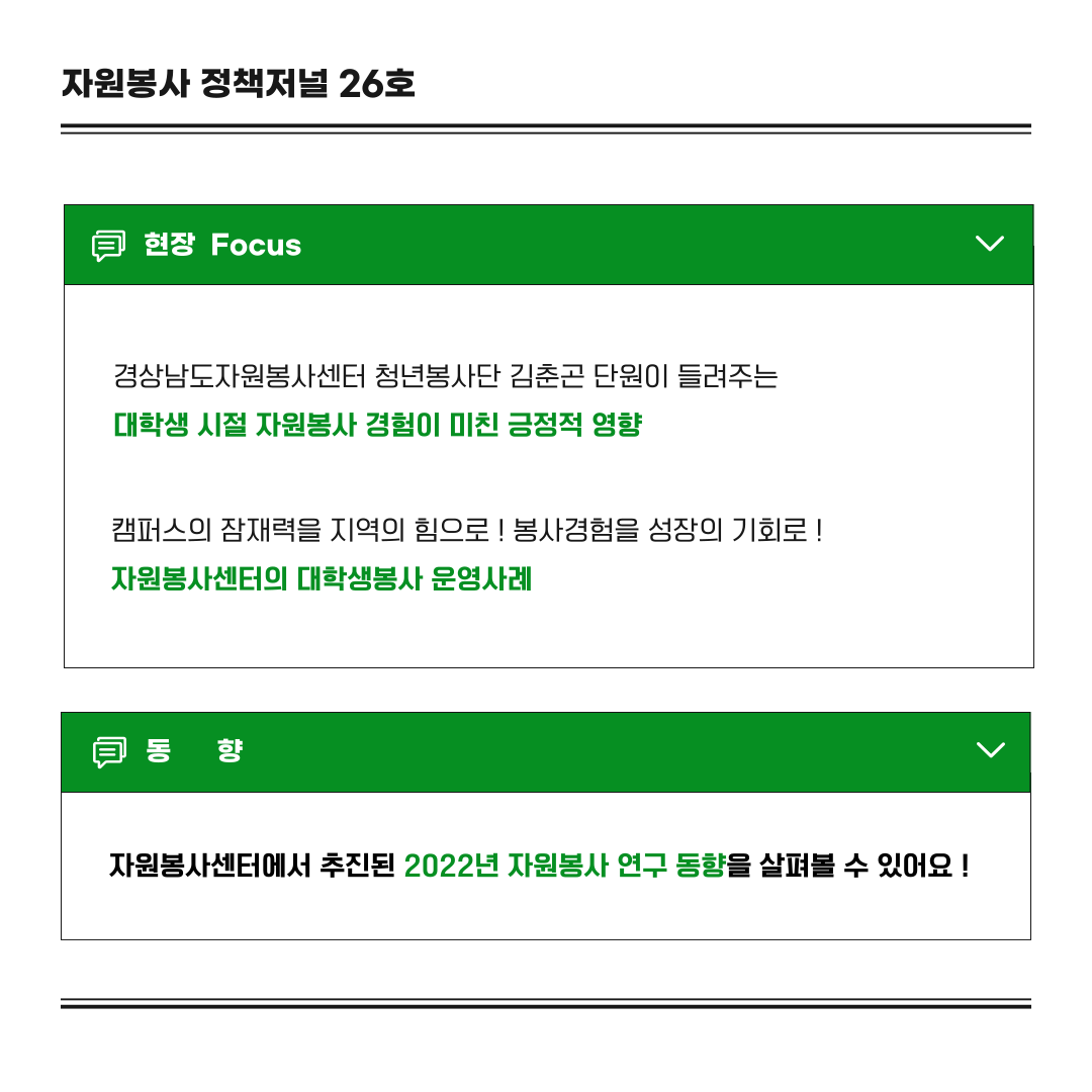 '자원봉사 정책저널'에 많은 관심 부탁드립니다. 감사합니다.