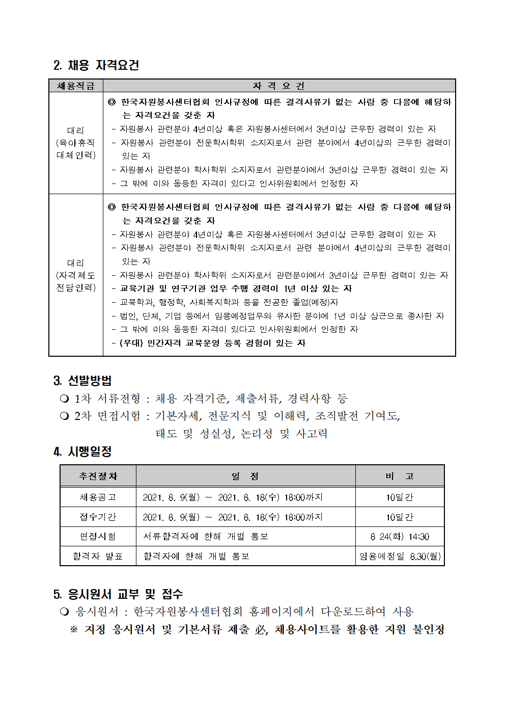 입찰/채용 (채용_홍보) 한국자원봉사센터협회 사무처 계약직 직원채용 재공고 2021.08.17 관리자 붙임. 한국자원봉사센터협회 사무처 계약직 채용 재공고문.hwp 이전글 (채용 제2021-004호) 재단법인 한국중앙자원봉사센터 직원채용 공고(계약직) 목록 다음글 (채용_홍보) (사)한국자원봉사문화 직원채용공고