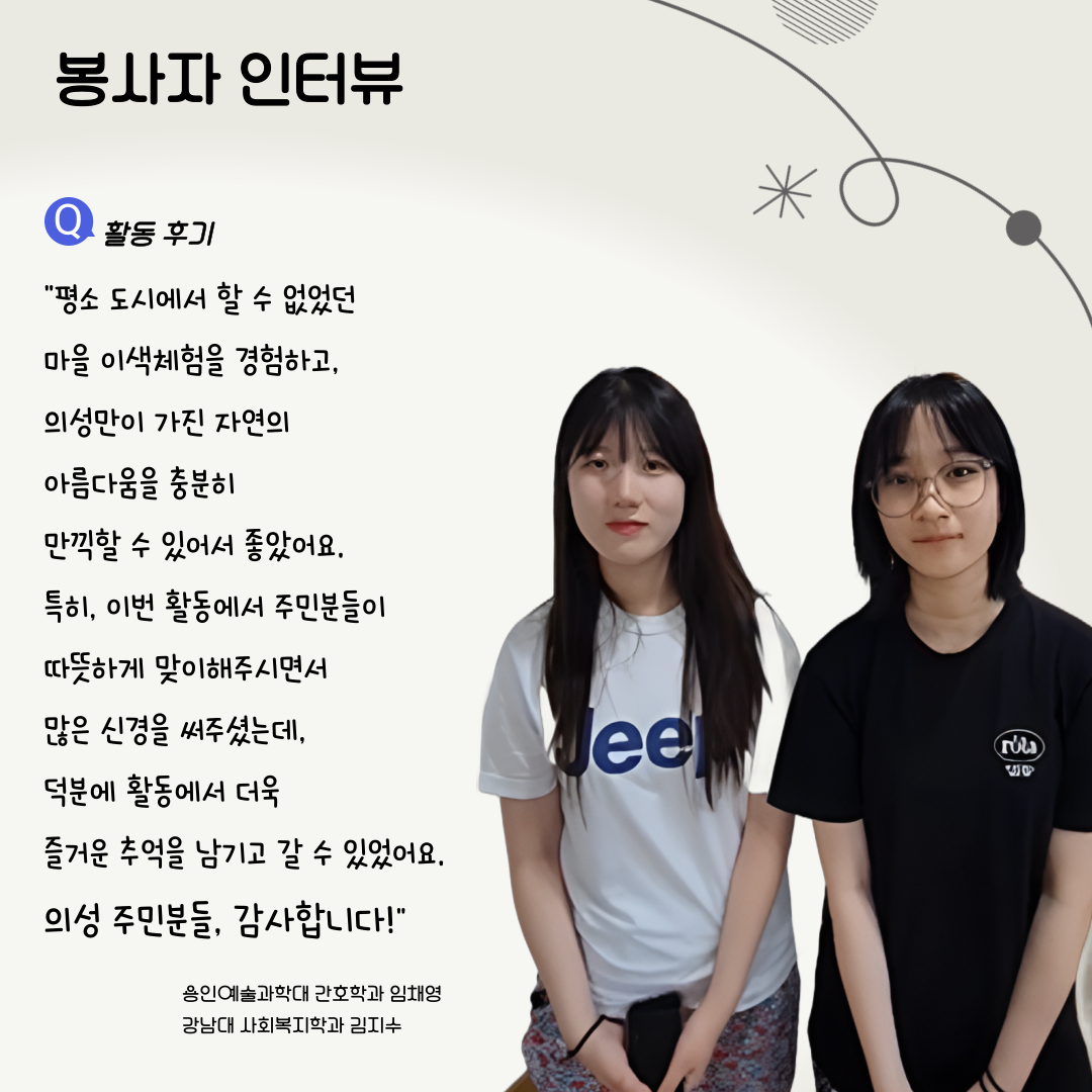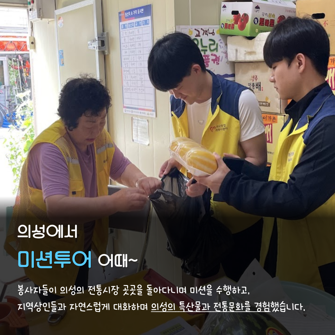활동사례 [경북 의성군] 여행 어때? 봉사 어때! 의성 어때~ 관리자 2024.12.11 230 화면 캡처 2025-10-20 094642.png 이전글 [충북 제천시] 고려인 가족과 같이(가치)있는 오늘! 맛있는 자원봉사 목록 다음글 [경남 하동군] 하동 자원봉사 첫 걸음, 인생 2막 첫 걸음