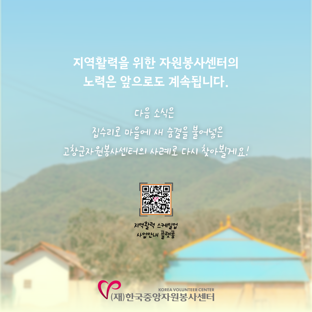 활동사례 [충남 태안군] 자원봉사로 하나 되는 이주민 커넥션 플랫폼(관계안내인) 관리자 2024.12.20 216 이전글 [전북 고창군] 활력 고창 집‧정‧원 스케일업 프로젝트 목록 다음글 [충북 제천시] 고려인 가족과 같이(가치)있는 오늘! 맛있는 자원봉사