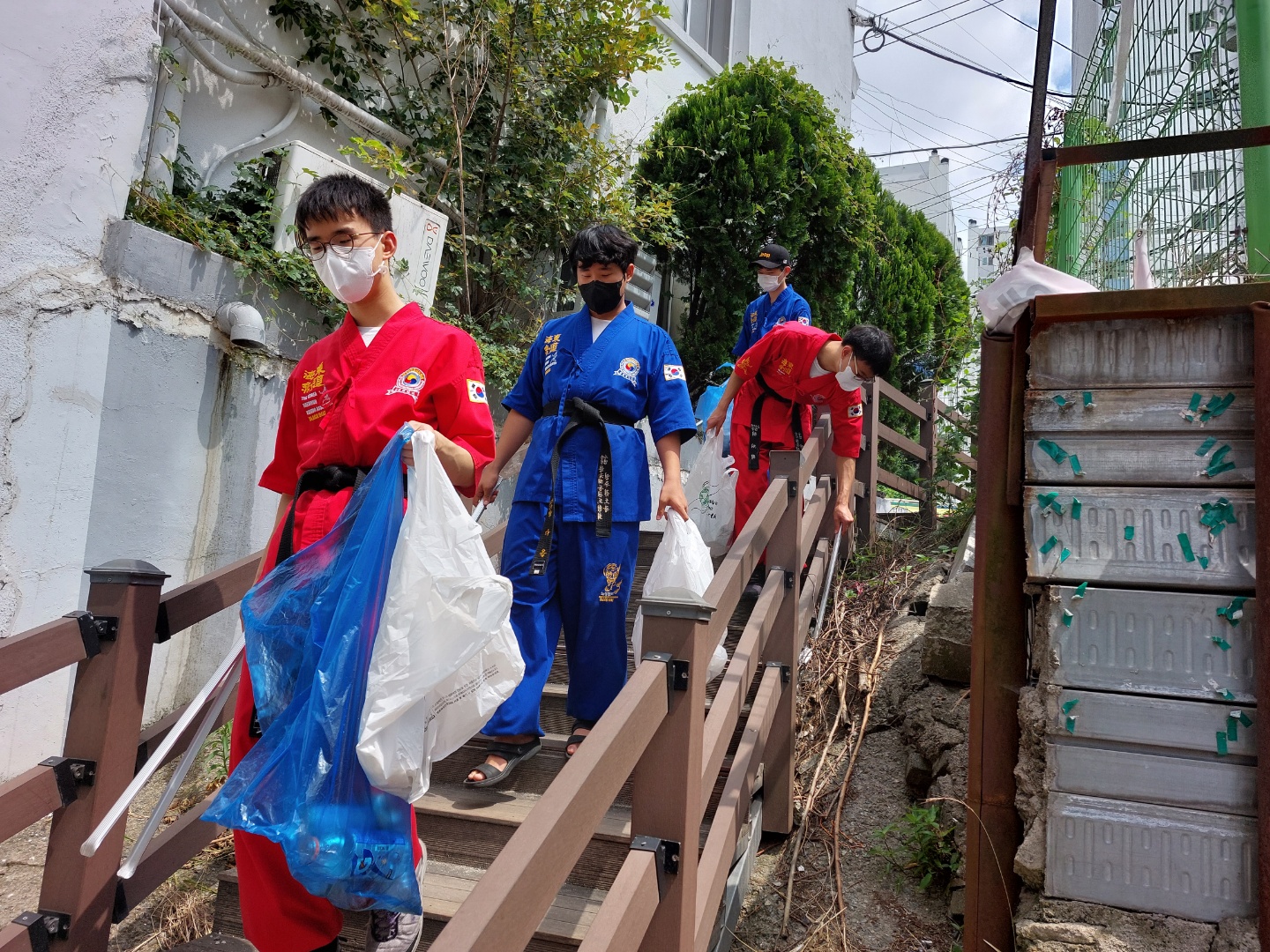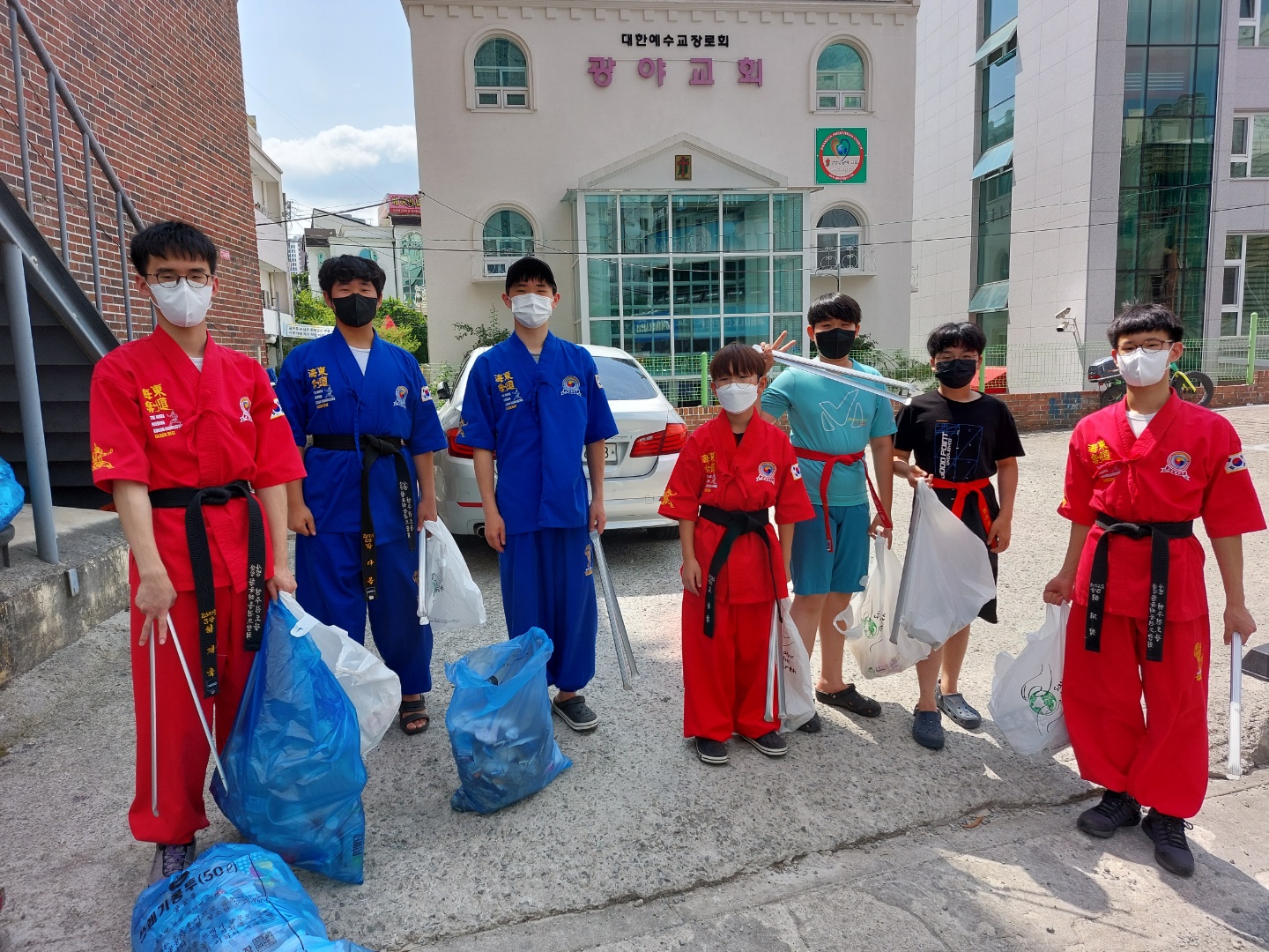 깨끗이 씻어 염주해동검도 도장으로 가져오고