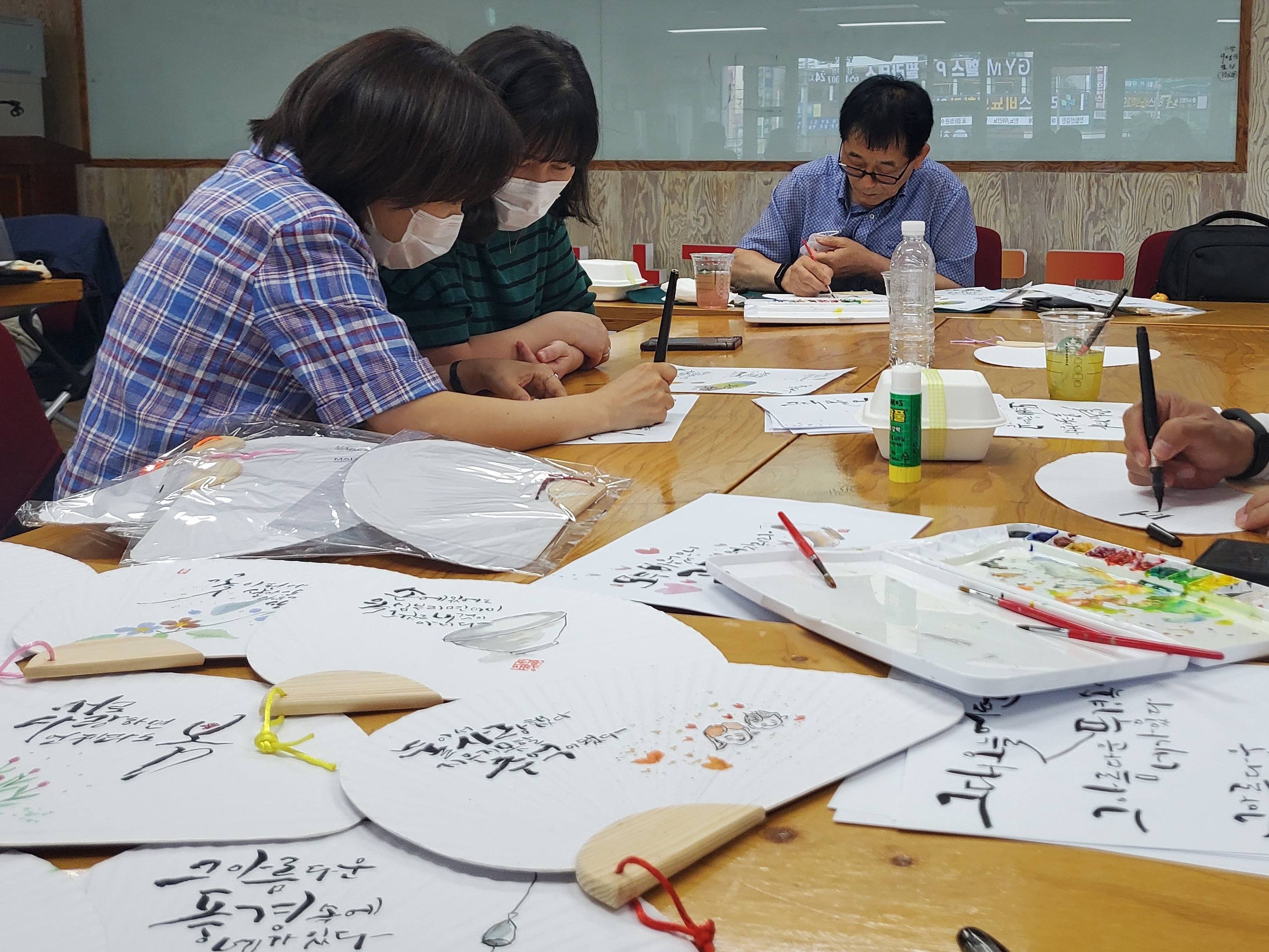 좋은 글귀와 그림을 더해 한지부채를 만들었습니다.