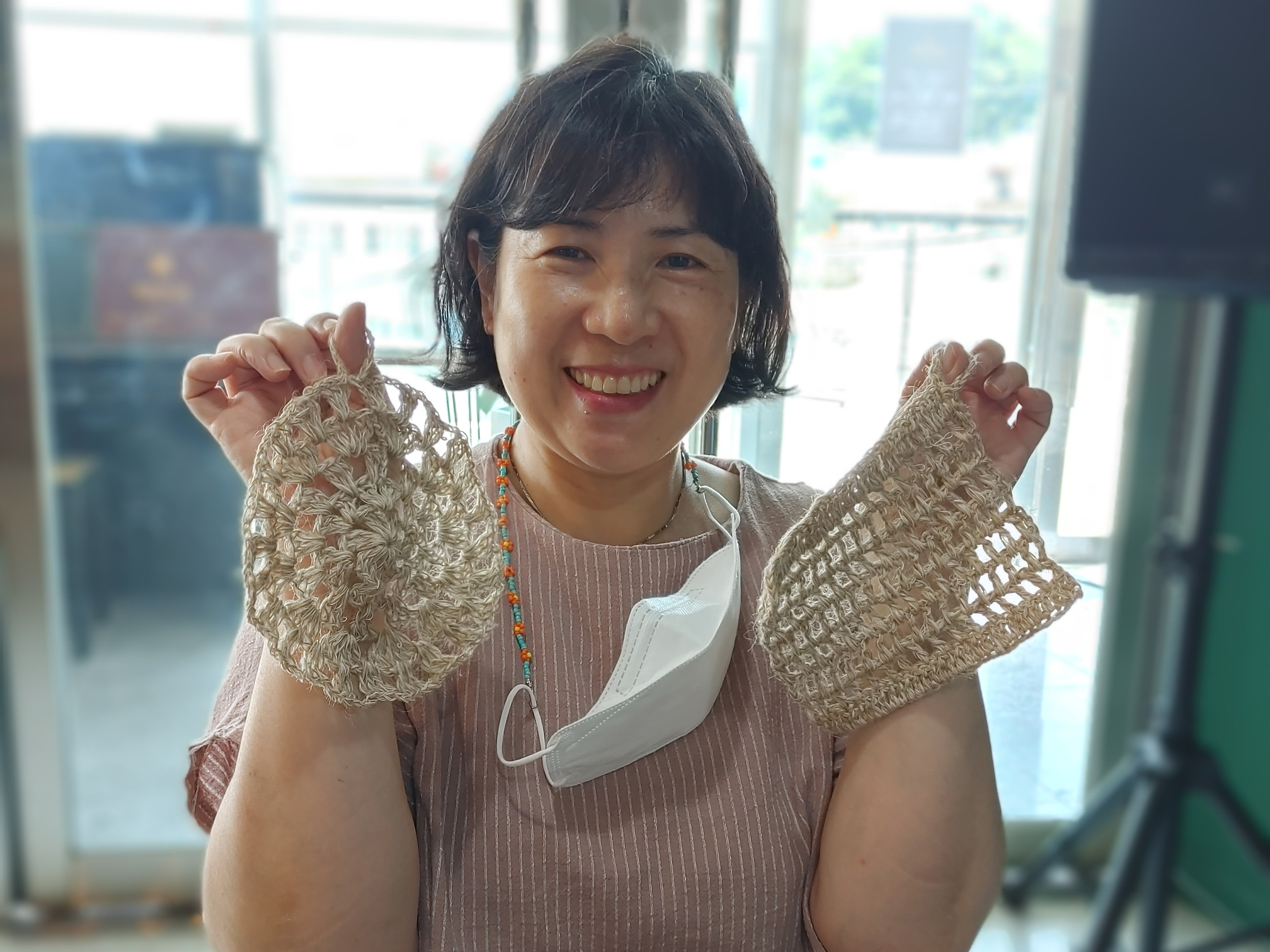정성껏 만든 수세미를 각 가정에서 사용하며