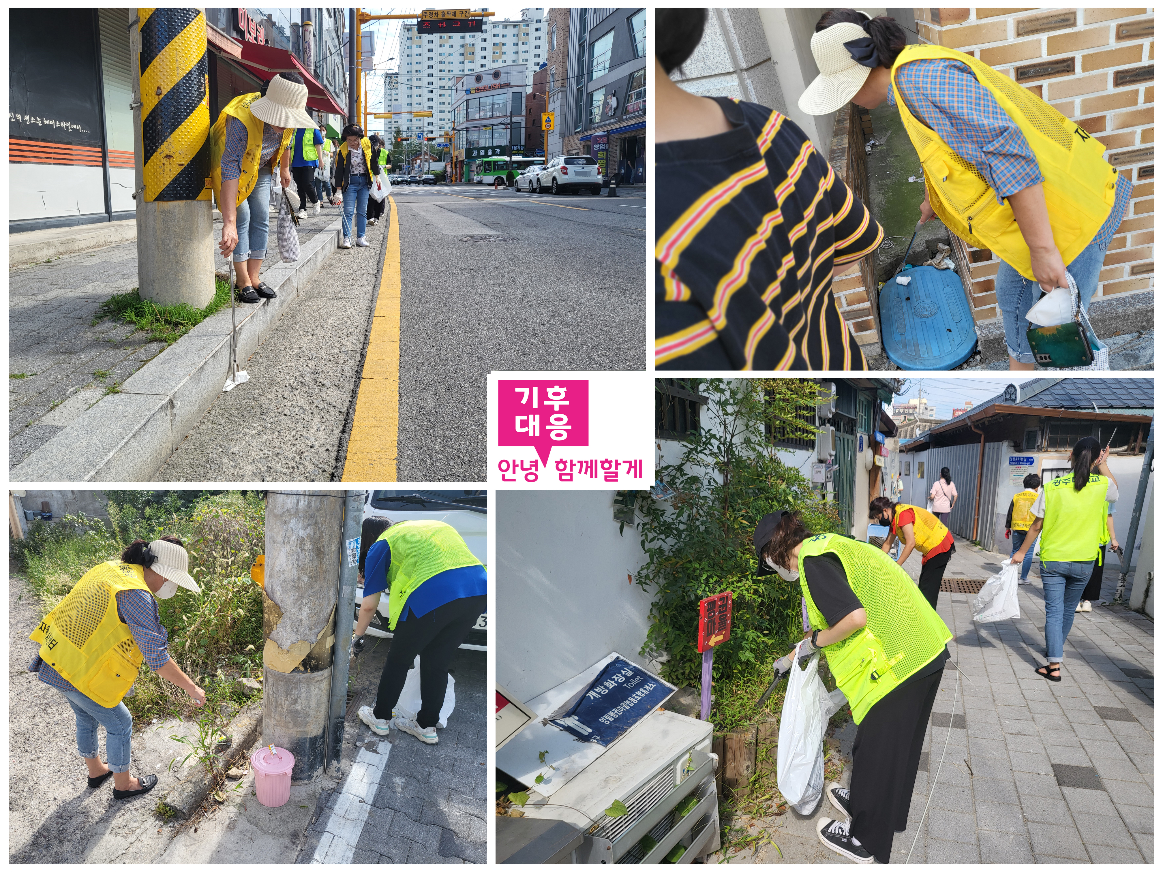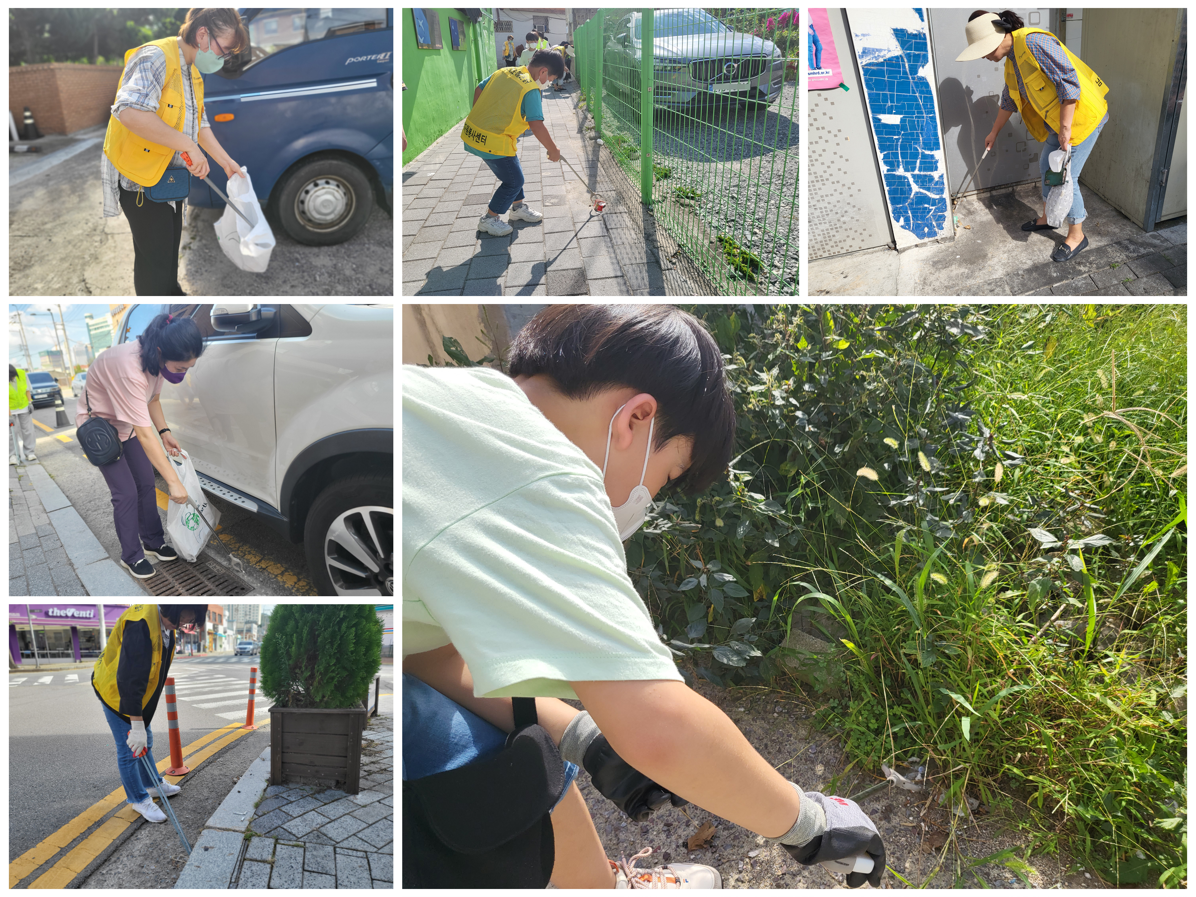 펭귄마을 골목 곳곳에서 플로깅을 진행하며