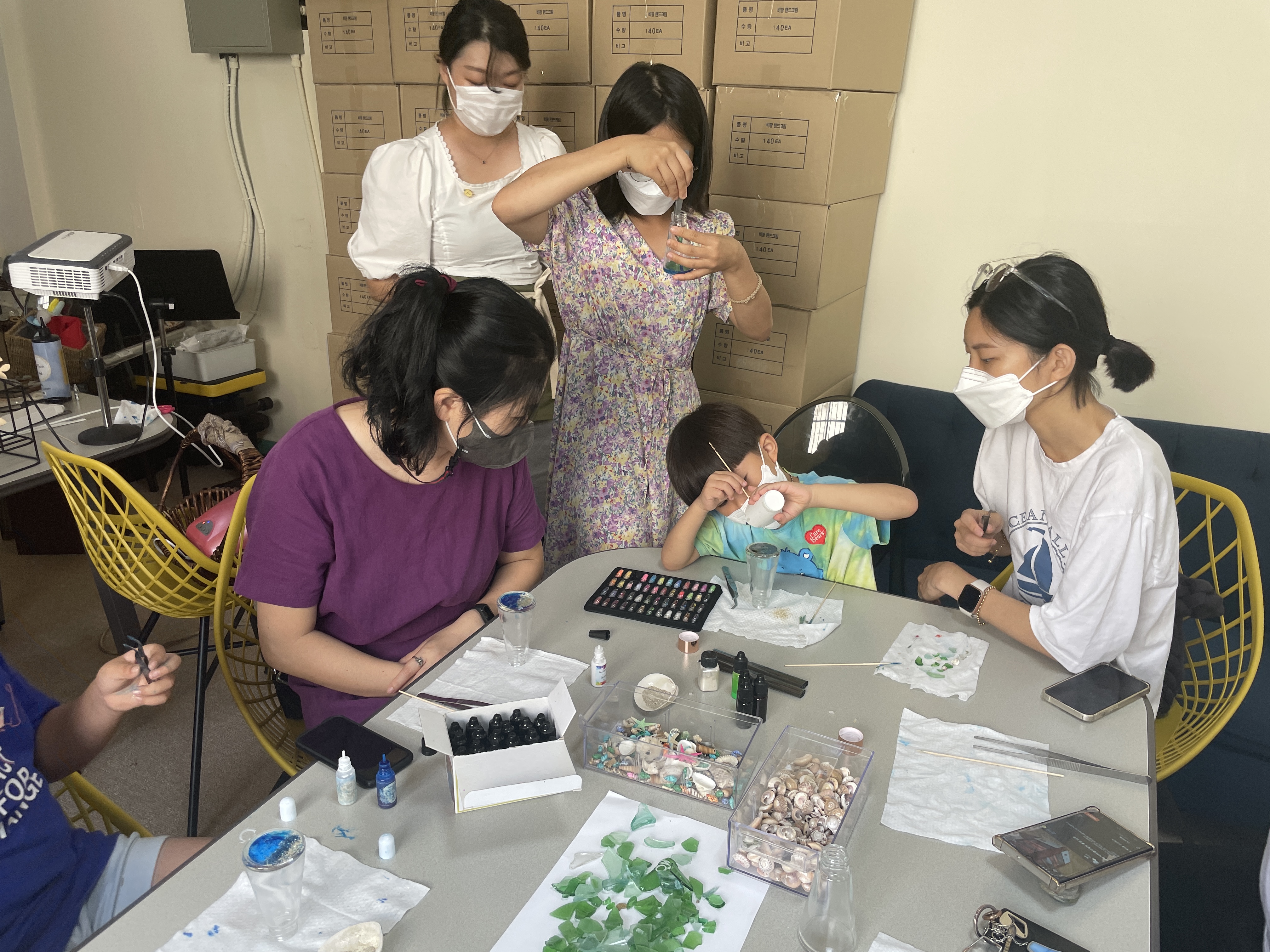 참여자들은 바다유리, 치패껍질, 전복 껍질 가루 등
