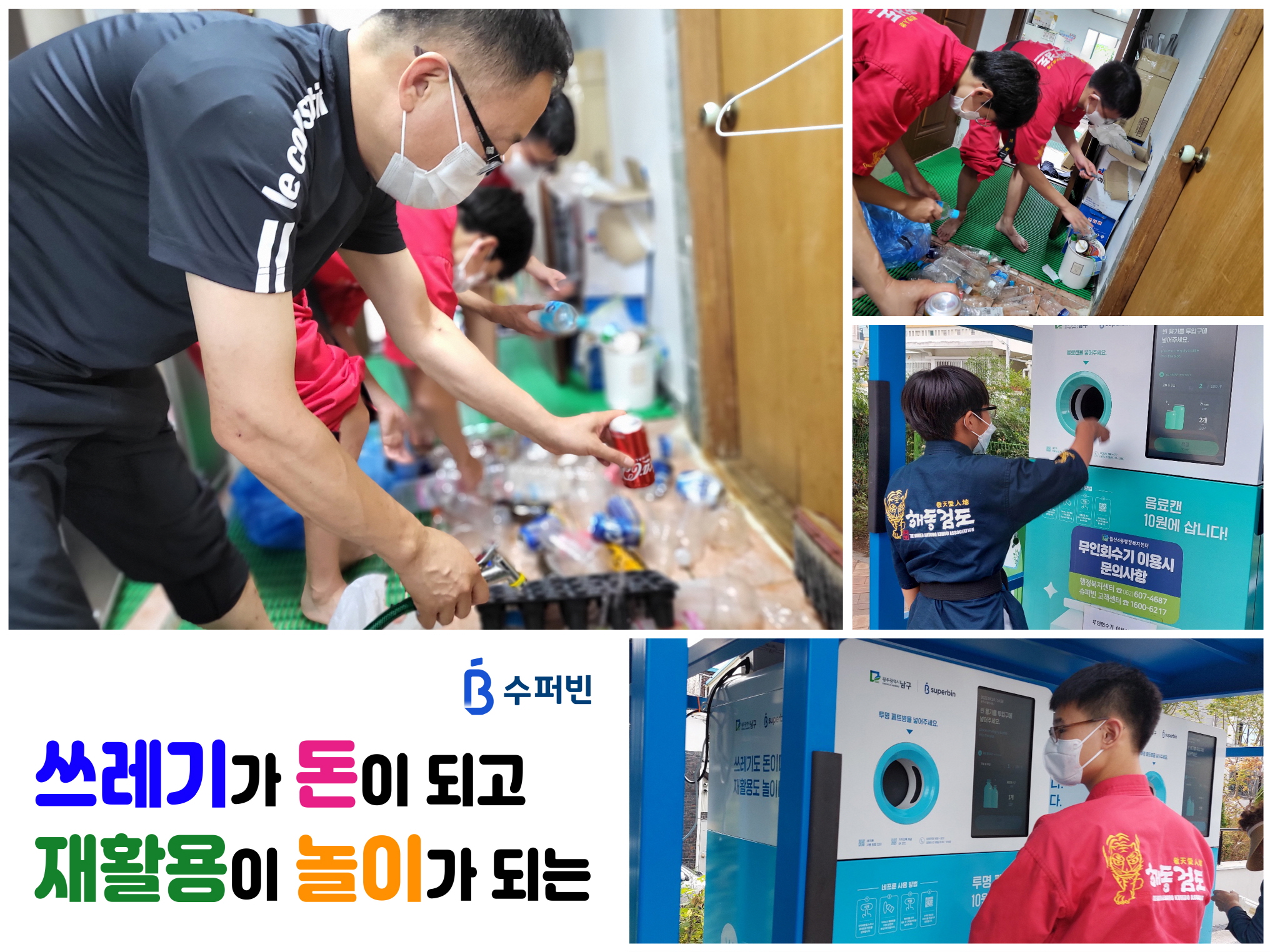 깨끗이 씻어 말린 후‘수퍼빈’기계를 이용해