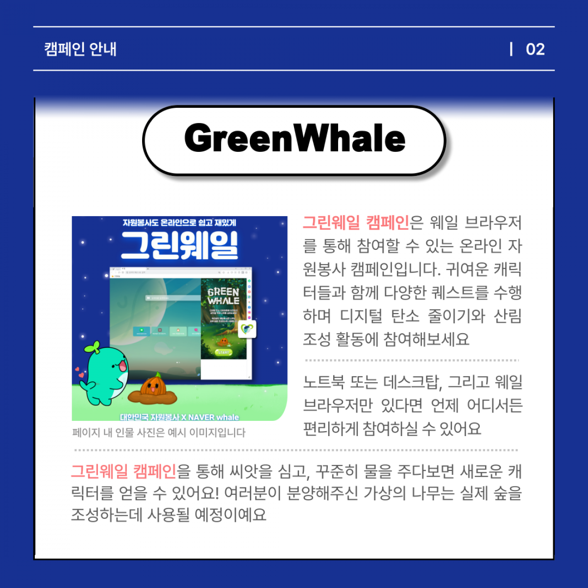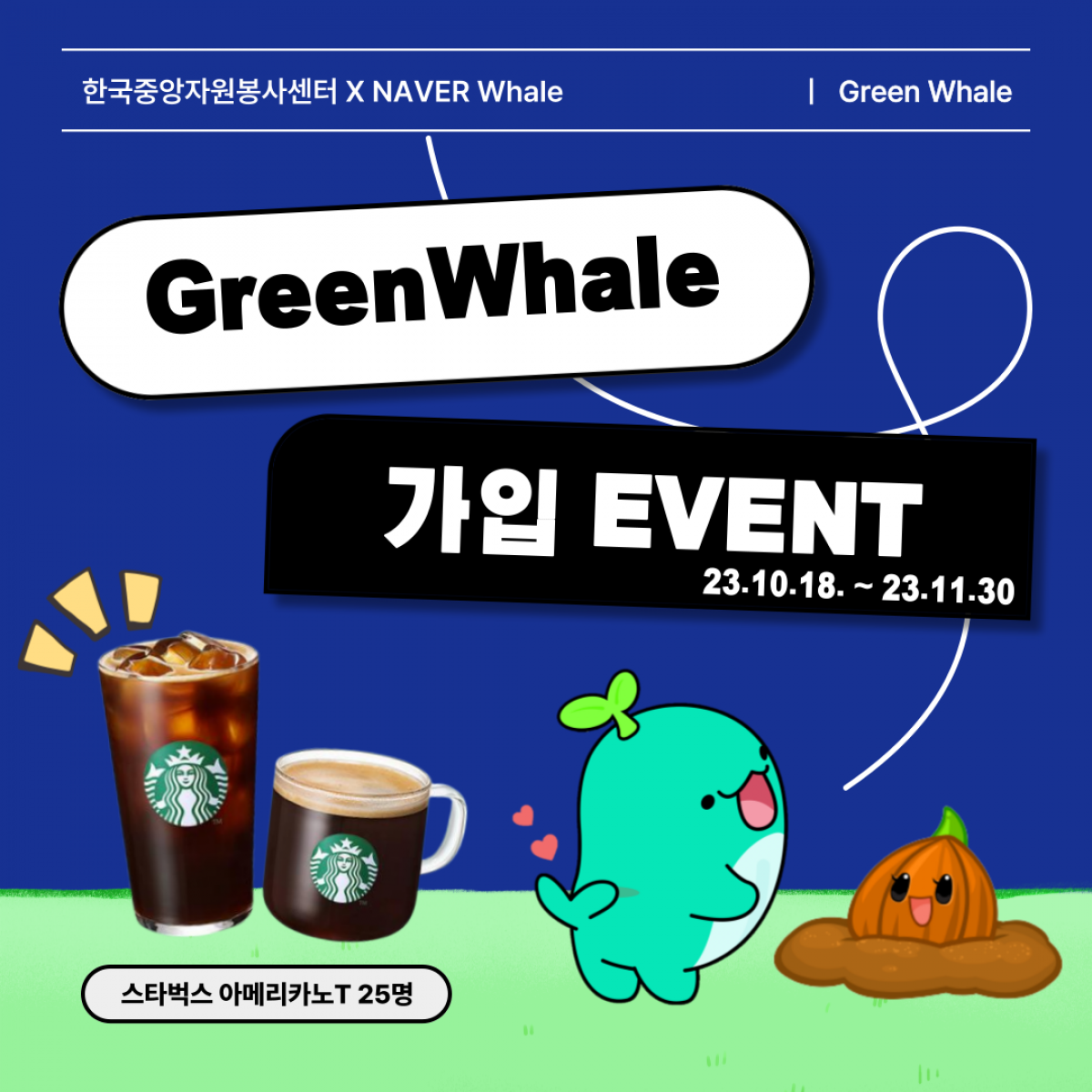 주요행사 [2023] 그린웨일 회원가입 이벤트 2023.10.18 ~ 2023.11.30 한국중앙자원봉사센터 이전글 [2023] 네이버웨일X그린웨일 콜라보 이벤트... 목록 다음글 [2023] 안녕! 산해진미 함께할게 이벤트 : 빈 칸...