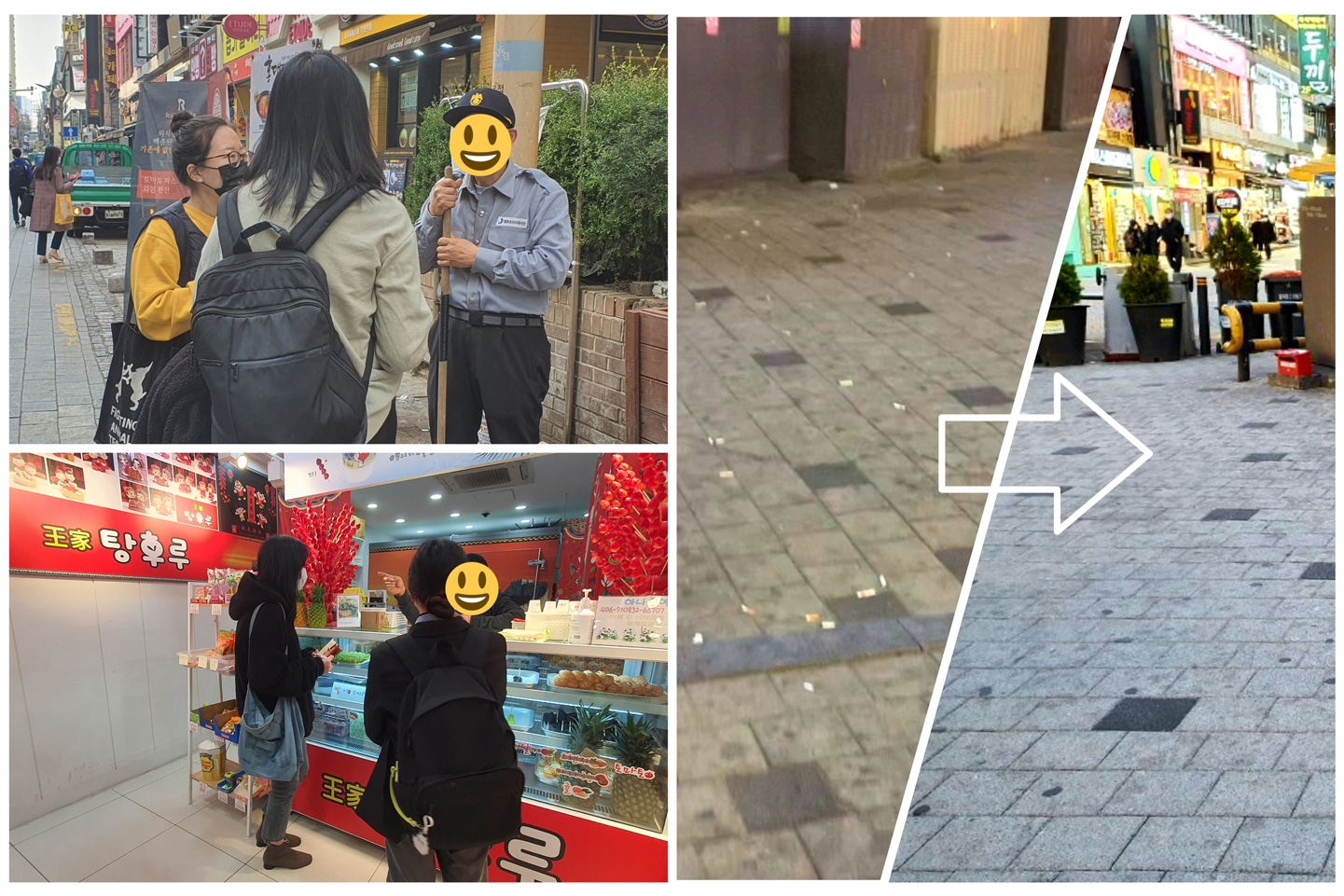 다음으로 주민들의 만족에서 비롯된 협력과 도움의 모습들이었습니다. 학생들이 추운 겨울에 고된 일 한다며 청소도구를 빌려주시는 인근 주민분들부터, 작게 응원을 전해주시는 상인분들, 흡연구역이 아닌 공공장소에서의 흡연이 잘못 되었다는 것을 인지하면서도 순간의 귀찮음으로 꽁초를 버리고 갔던 분들의 소소한 반성까지요. 작은 변화였지만, 그 발걸음을 중심으로 부천역의 시민들의 일상에 환경을 생각하는 마음도 함께 자리잡았답니다.
