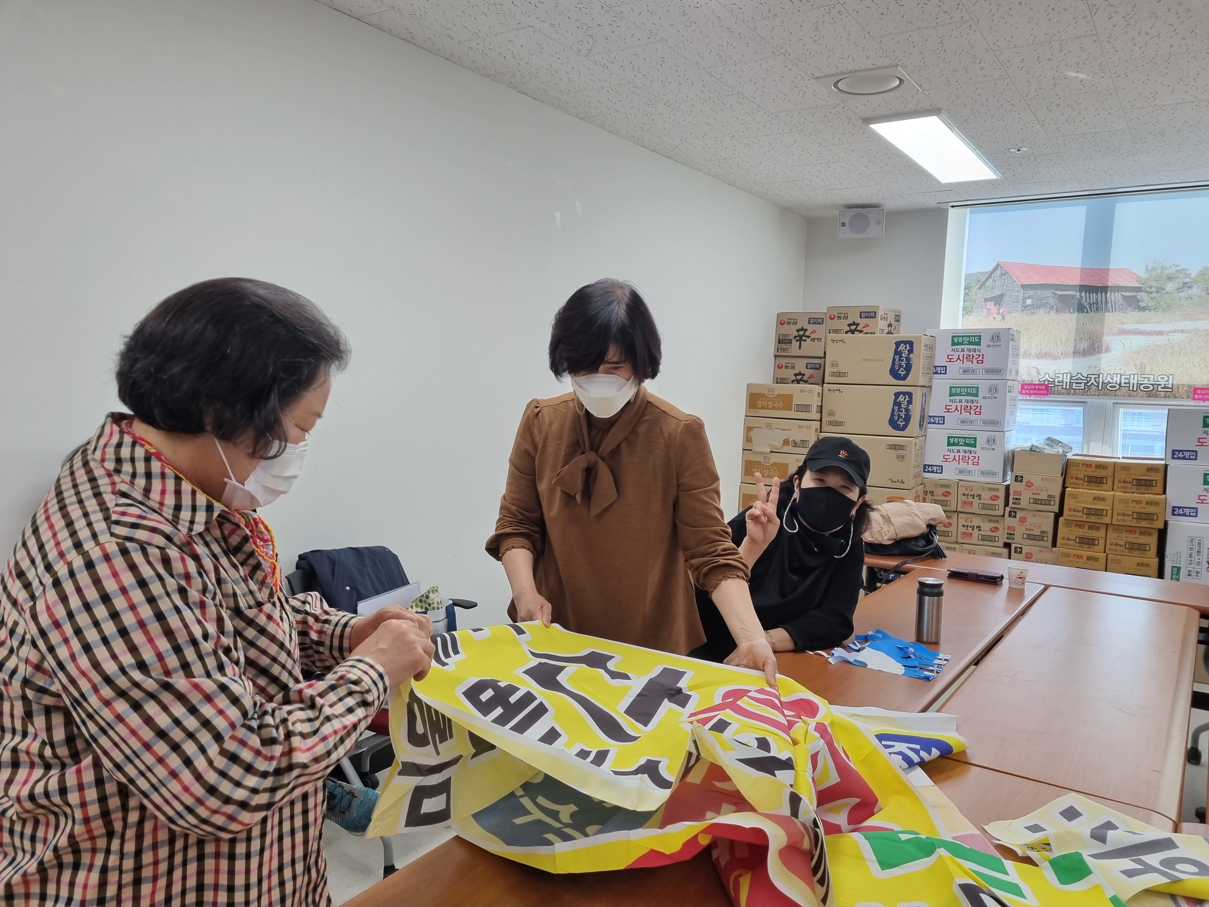 가장 많이 본 사례는 폐현수막을 이용하여 장바구니를 만들어 나누어 드리는 것이였습니다.