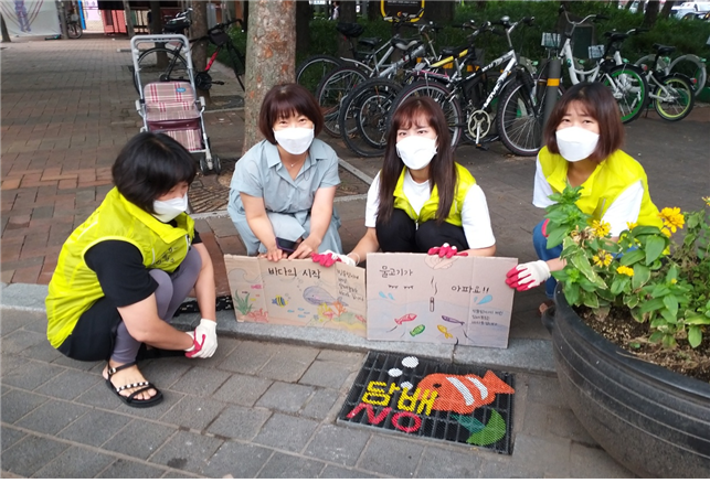 빗물받이를 활용하는 캠페인이다 보니 관의 협조가 없으면 불가능한 사업이었습니다. 다른 센터처럼 빗물받이 옆에 그림을 그리는 방법도 고민을 했는데 미관상의 이유, 사후관리가 안 된다는 이유로 협조 구하기가 쉽지 않아 지금의 방법으로 설득해 진행했습니다.