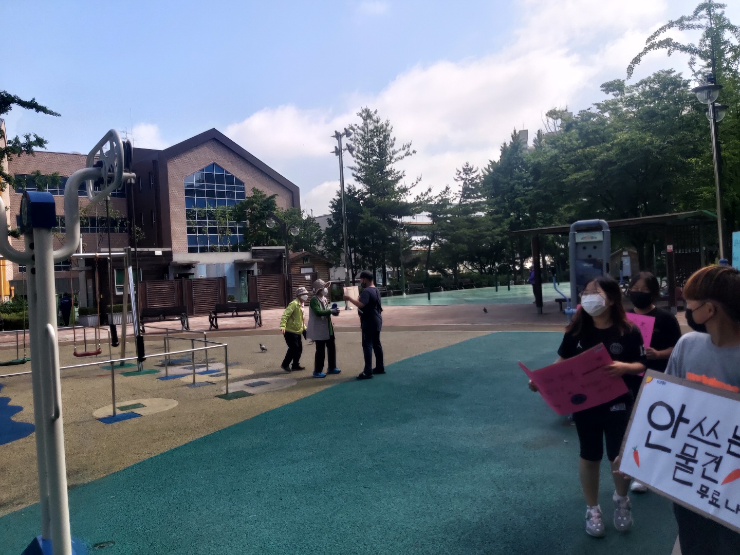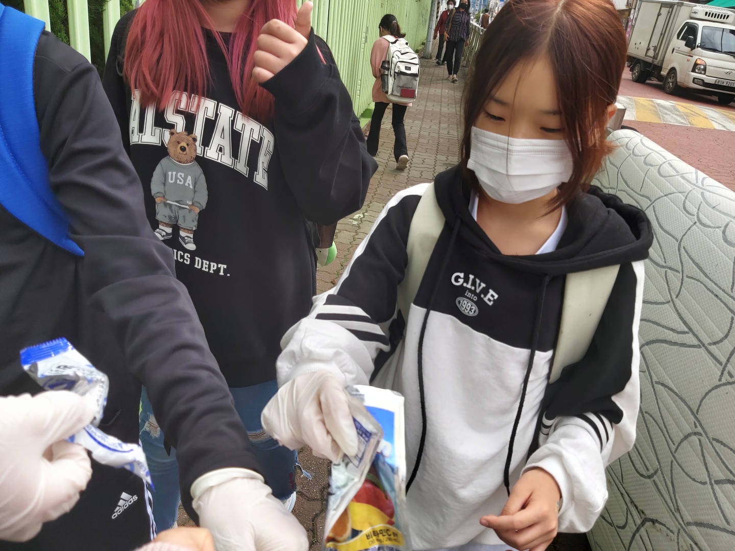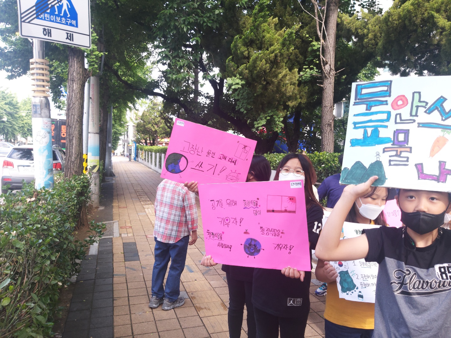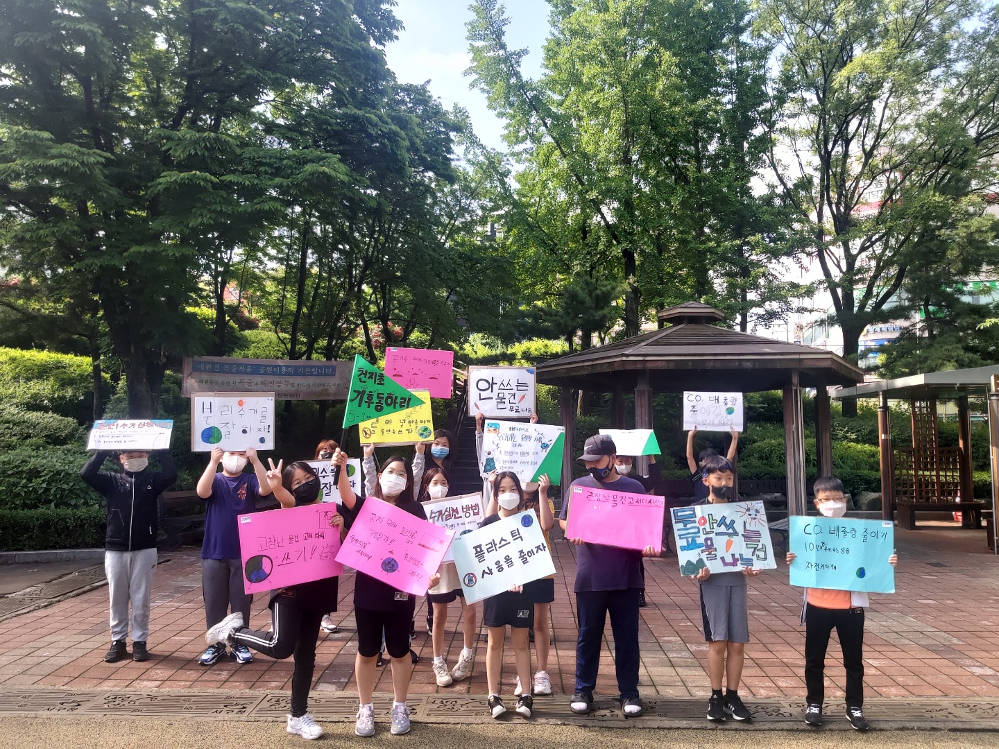 - 학교 주변공원을 돌며 어르신들과 어린이들에게 기후위기와 자원재활용을 위한 홍보를 함에 있어서도 부끄럼 없이 적극적으로 임하였다.