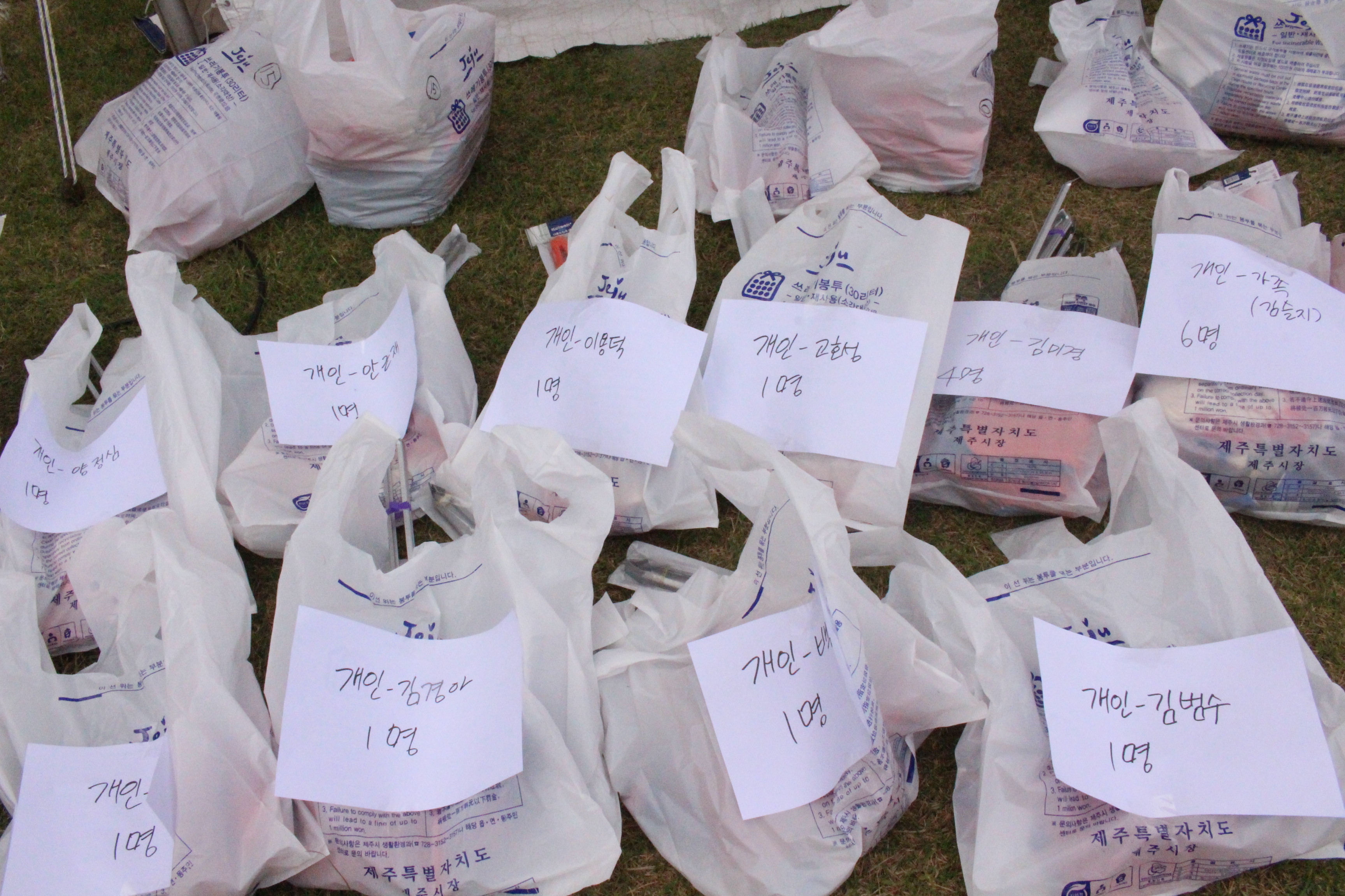 해안 쓰레기는 날카로운 부분이 많았으며, 공공용 봉투는 비닐로 되어 있어 찢어지기 때문에 안 찢어지는 쓰레기 봉투가 필요함