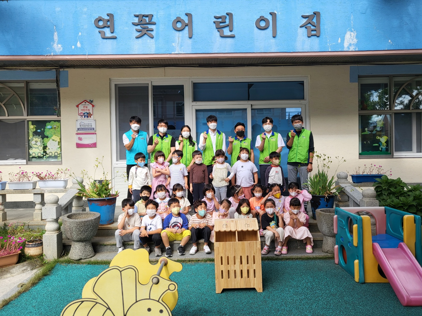 주민이 주도적으로 자원순환을 실천하고 특히 어린이들이 직접 우유팩을 모아 씻어 말려서 보관함에 정성껏 넣는 행동으로 이어졌습니다.