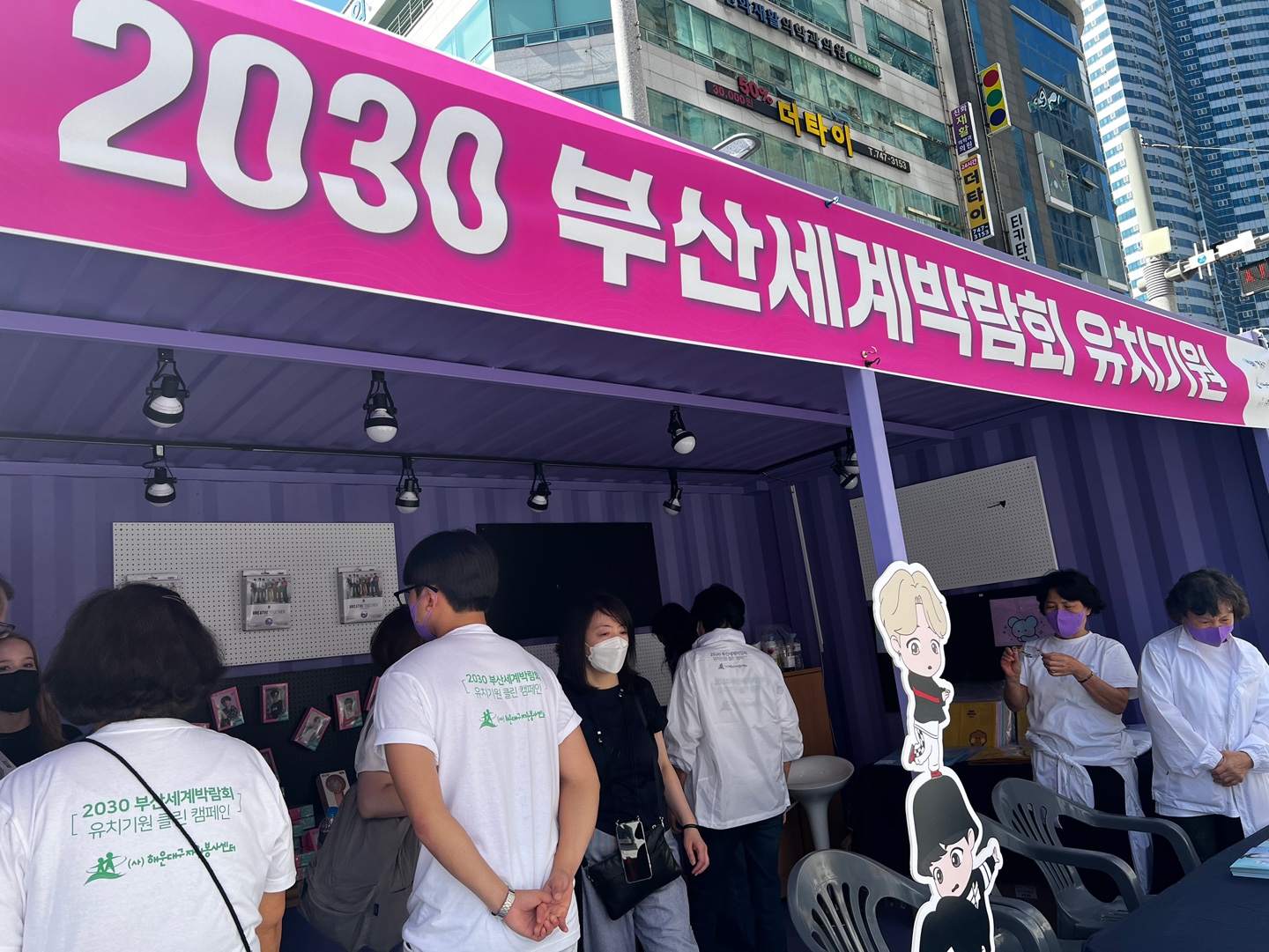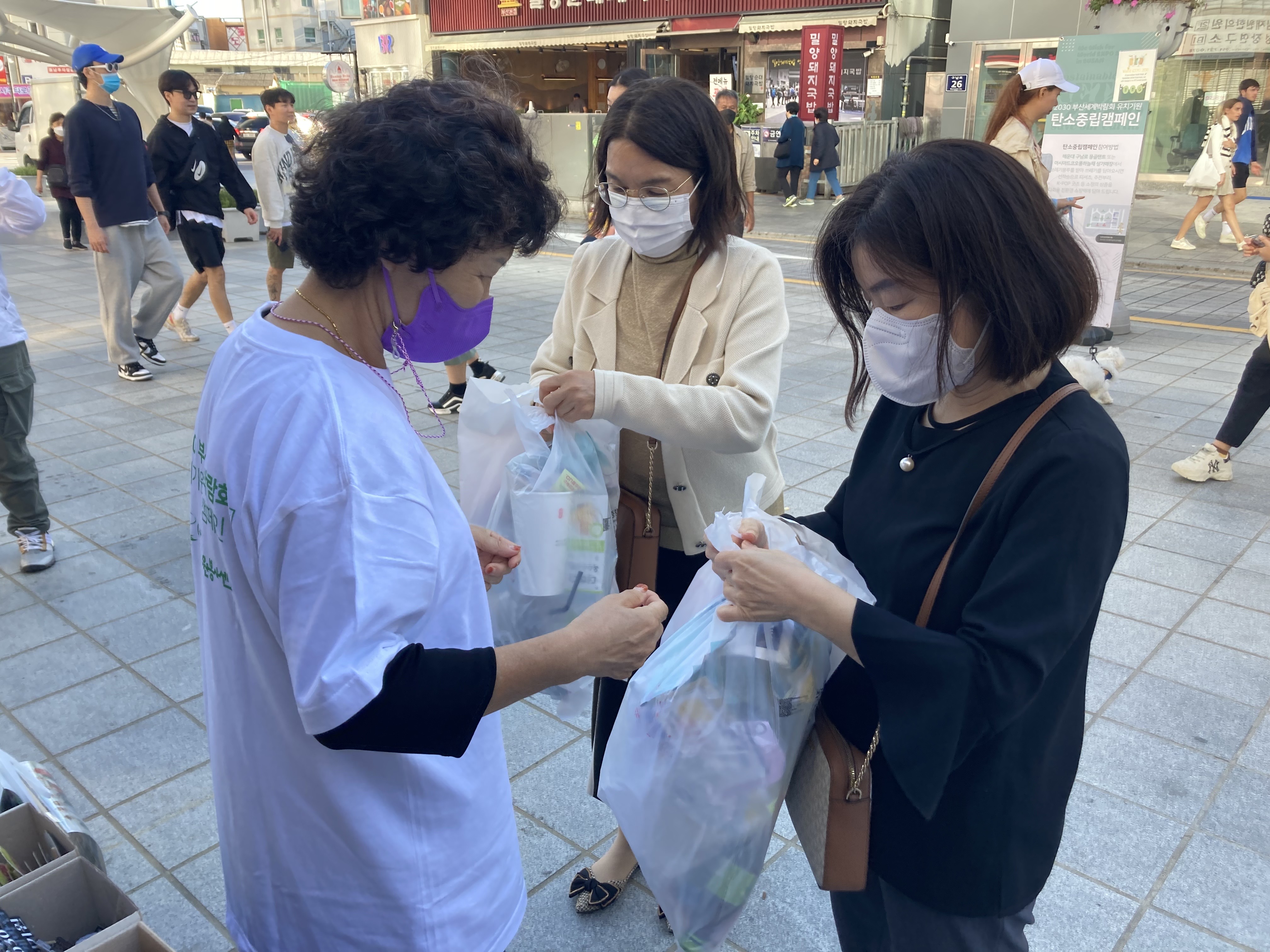 2030 부산세계박람회 유치기원 ‘탄소 중립 캠페인’은 친환경 소재를 사용하여 BTS굿즈를 제작하는 ㈜킹스타이엔엠의 협업으로 진행하게 되었습니다. 해운대는 BTS콘서트 실황중계를 위한 거점장소 중 한곳으로 많은 관광객들이 몰릴 것으로 예상하였고, 아름답고 깨끗한 해운대의 이미지를 전 세계적으로 알리는데, 시민 누구나 주도적이고 자발적인 참여 할 수 있음을 지지하기 위한 기획으로 활동을 진행하게 되었습니다. 사전 접수를 통해 캠페인이 진행 된 것이 아니라, 현장을 찾은 시민과 관광객을 대상으로 현장접수를 통해 캠페인을 진행하였습니다. 참여자의 sns 홍보를 통해 다른 지역의 사람들도 자발적으로 캠페인에 참여를 하였습니다. 2030 부산세계박람회 유치기원 BTS콘서트 실황중계로 해운대를 찾은 많은 관광객들이 쓰레기를 모으는 것이 힘들다고 말할 정도로 캠페인 진행기간 동안 쓰레기가 많이 줄었고, 이산화탄소 배출을 줄이기 위한 첫 번째 노력은 ‘일회용품 사용 줄이기입니다.’ 라고 이야기 한 후, 그 이유까지 정확하게 설명하는 참여자가 나올 정도로 캠페인의 역할이 중요했음을 느낄 수 있었습니다.