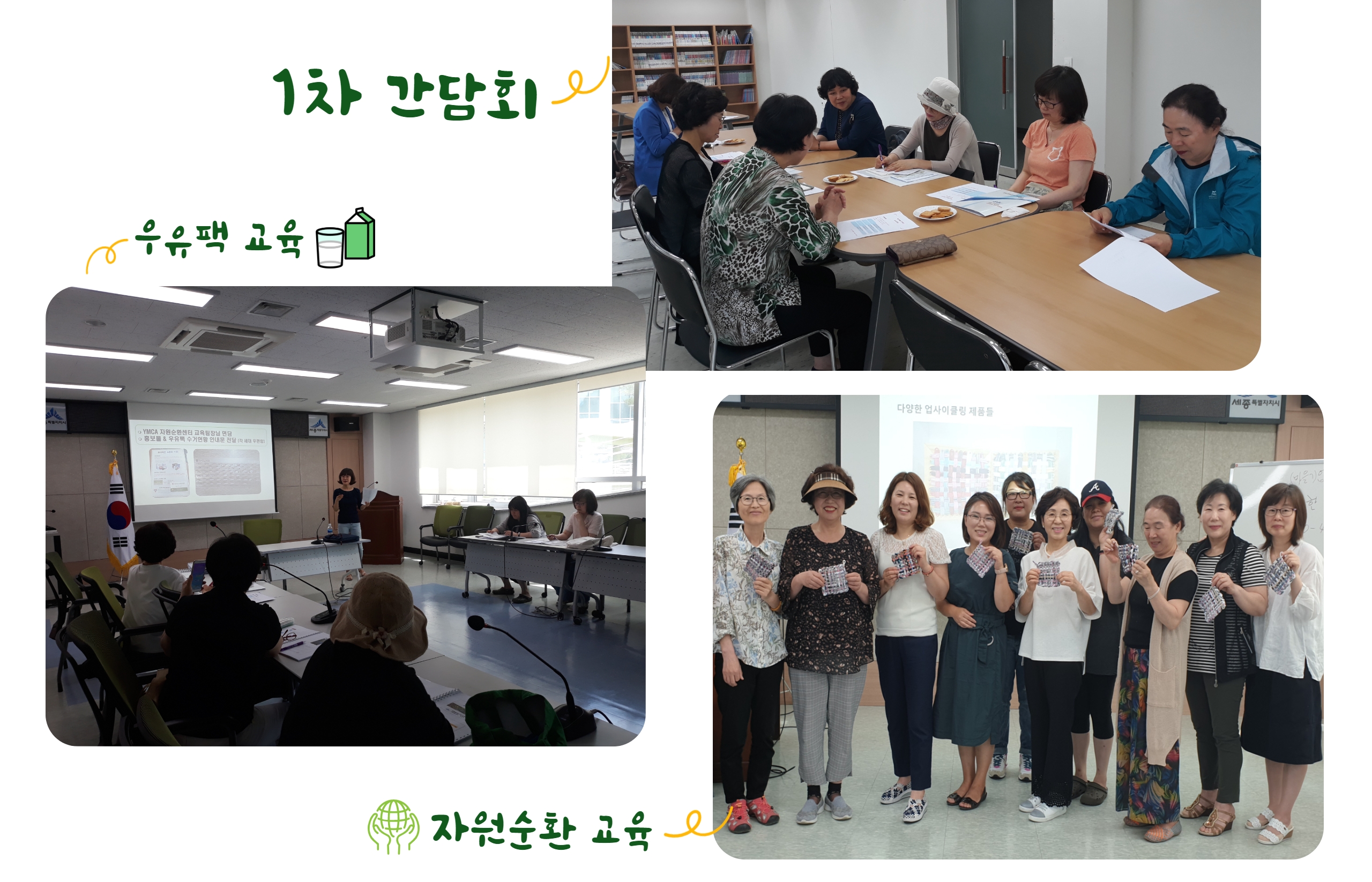 2) 환경교육을 실시하여 미생물(EM)활용, 친환경농법우유팩 재활용 교육, 유전자 변형 GMO 식품에 대한 올바른 교육, 올바른 재활용 분리수거 방법, 자원순환 교육 등을 진행하였습니다.