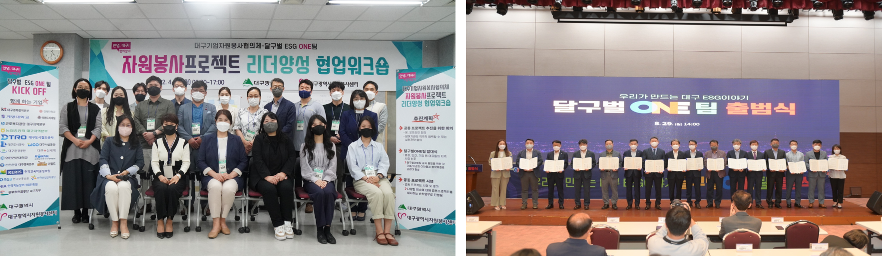 기후위기시대, ESG기반의 사회공헌 및 범시민적 자원봉사활성화를 위해 대구의 16개의 공공기관, 기업, 대학교, 지역사회기관이 모였습니다! 살기 좋은 대구, 그린 대구를 만들기 위하여 하나가 된 우리는 ‘달구벌ONE팀’입니다!