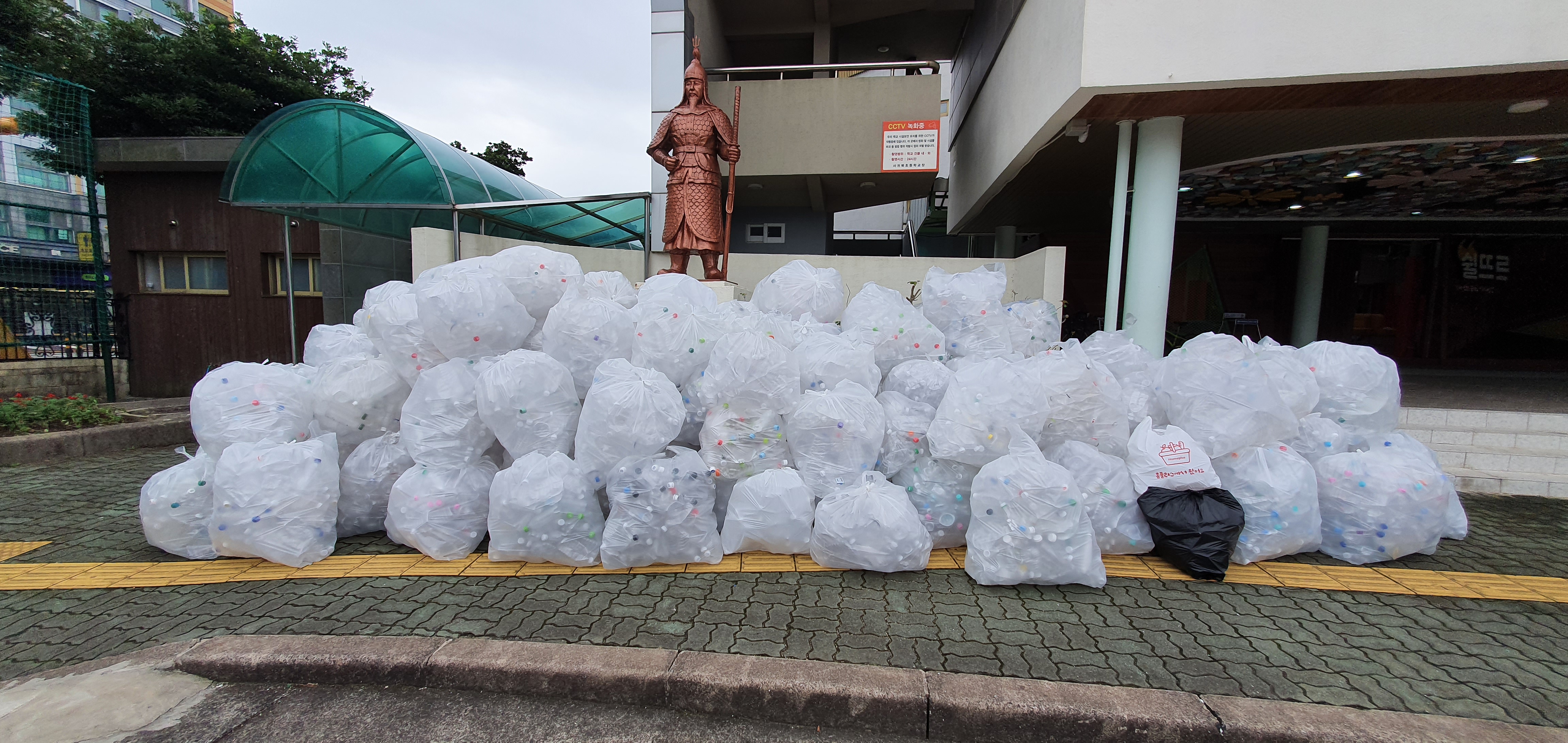 성인 자원봉사자분들은 거리에 아무렇게나 버려진 투명 페트병을 매일 같이 줍고