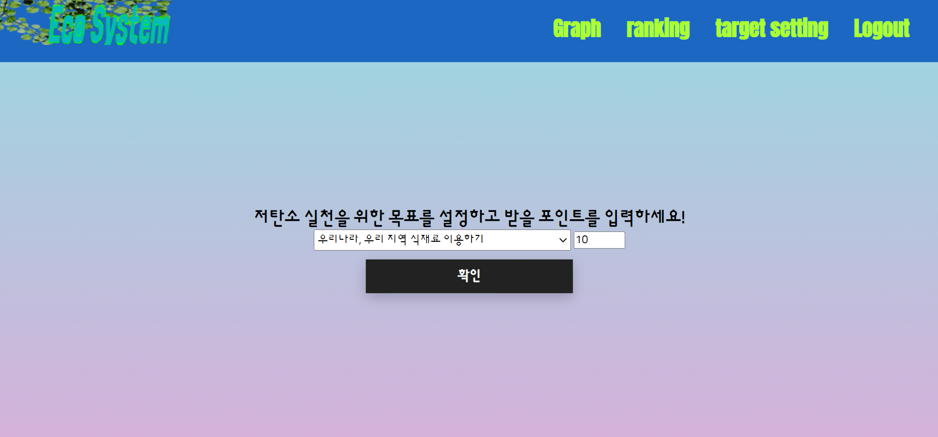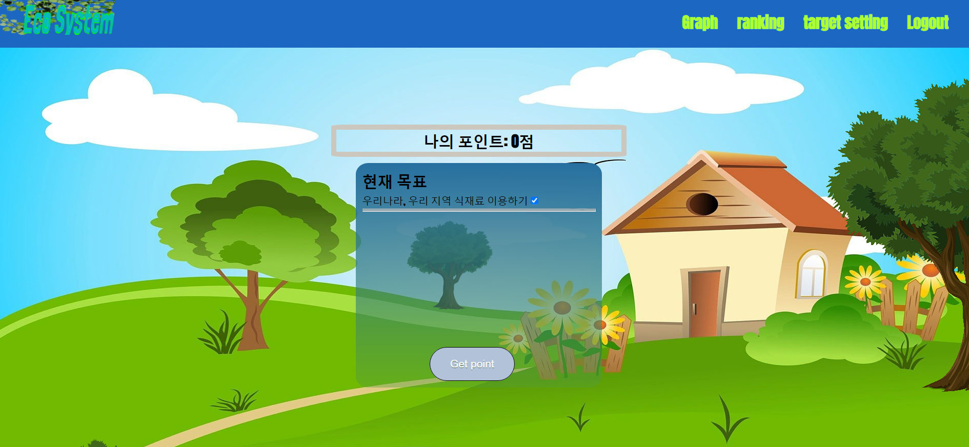 두 번째, 가장 중요한 목표설정입니다. 로그인기능을 구현하여 일상생활에서 할 수 있는 탄소중립 실천생활 목록을 나열하여 사용자가 원하는 항목을 선택 할 수 있게합니다. 항목에 따른 포인트를 받을 수 있습니다. 이로써 플래너를 작성하는 것 처럼 탄소중립을 위한 계획을 세우고, 실천하는 것을 돕습니다.