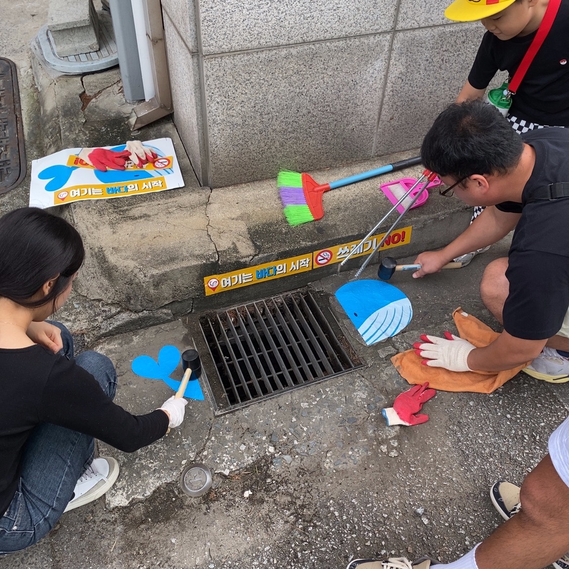 스티커 부착 위치는 주로 바다로 흘러 들어가는 오염수의 시작점인 근처 빗물받이를 바탕으로 진행이 되고 있습니다. 그리고 단순 스티커 부착만 진행하는 것이 하지 다시금 빗물받이로 쓰레기, 담배꽁초 등이 들어가지 않도록 주변 환경정화 시간도 가지는 활동입니다.