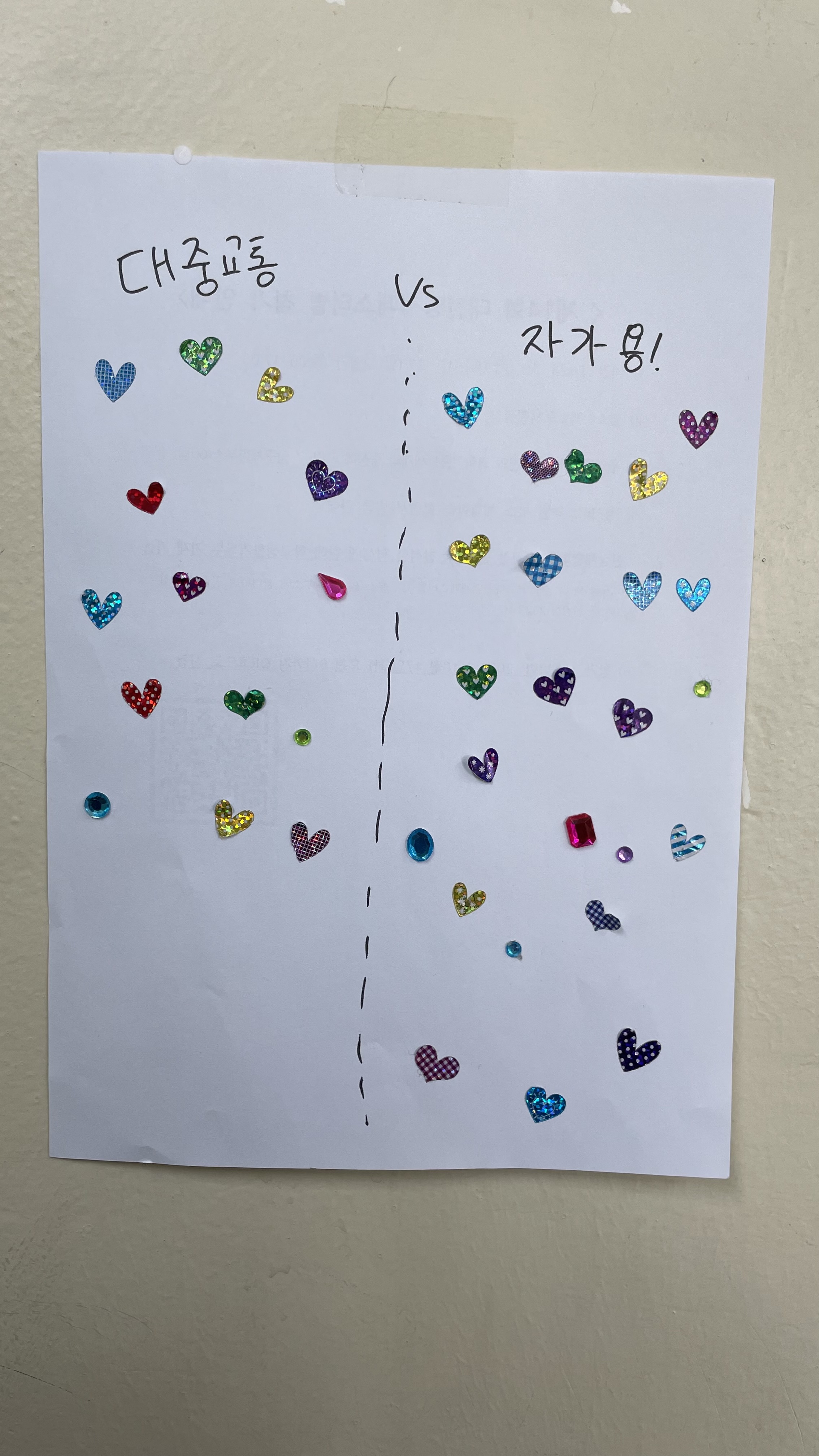 먼저 활동을 하기 위해 기획하는 시간을 가졌는데 의외로 많은 시간이 없어서 2주라는 시간을 잡고 반 친구들 중에서 활동하고 싶어하는 친구들을 모았습니다. 다행히 어려운 활동이 아니었기에 반 친구 모두가 참여하는 활동이 되었습니다. 그 다음 친구들을 대중교통을 많이 이용하는 친구들과 많이 이용하지 않는 친구들로 나누었고, 포인트 적립 방법을 나누어 많이 이용하는 친구들과 많이 이용하지 않은 친구들이 공평하게 모을 수 있도록 진행하였습니다.