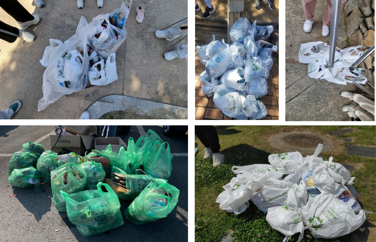○플로깅 활동을 하면서 생분해 비닐봉투와 종량제 봉투를 함께 지원하였는데 종량제 봉투 대부분이 플라스틱의 한 종류이며 소각 시 유해물질이 배출되고 매립 후 분해되기까지 최대 1,000년의 시간이 필요하다고 합니다. 친환경 종량제 봉투를 사용하고 있는 지역이 있지만 아직 많지는 않아 종량제 봉투가 만들어 내는 환경오염 문제에 대해서도 자원봉사자들이 생각해보게 되었습니다. 또한 플로깅 및 연합환경정화 활동 시 쓰레기를 모으는 활동에 집중한 경향이 있어 분리수거가 미흡하지 않았냐는 의견이 있었습니다. 모인 쓰레기를 분리수거하는 과정도 플로깅 활동이라는 인식개선이 부족하였다는 한계가 있었습니다.