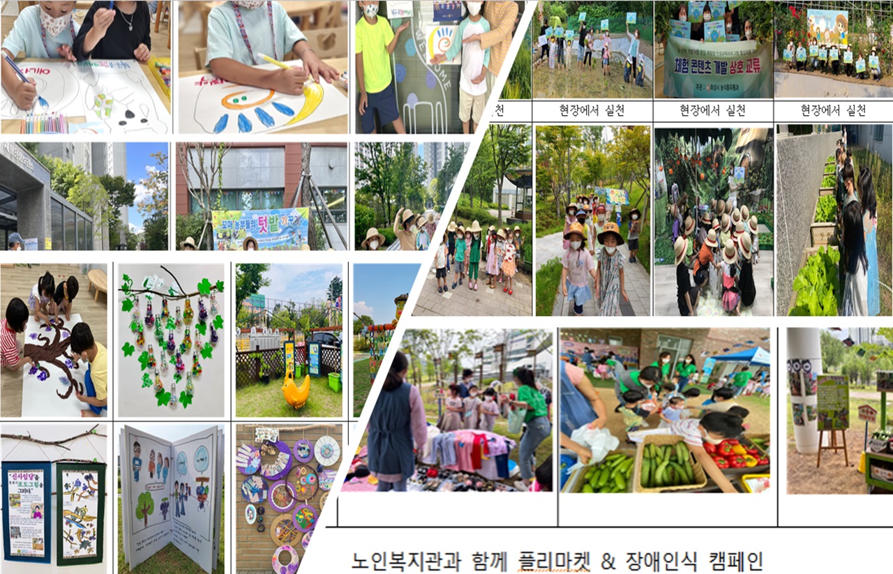 둘째는 제철농산물을 교육활동에 접목하여 단순 요리용이 아닌 교육용재료로 활용하였으며, 나아가 아이들이 놀이활동으로 나타낸 작품들을 전시회를 개최하였습니다.