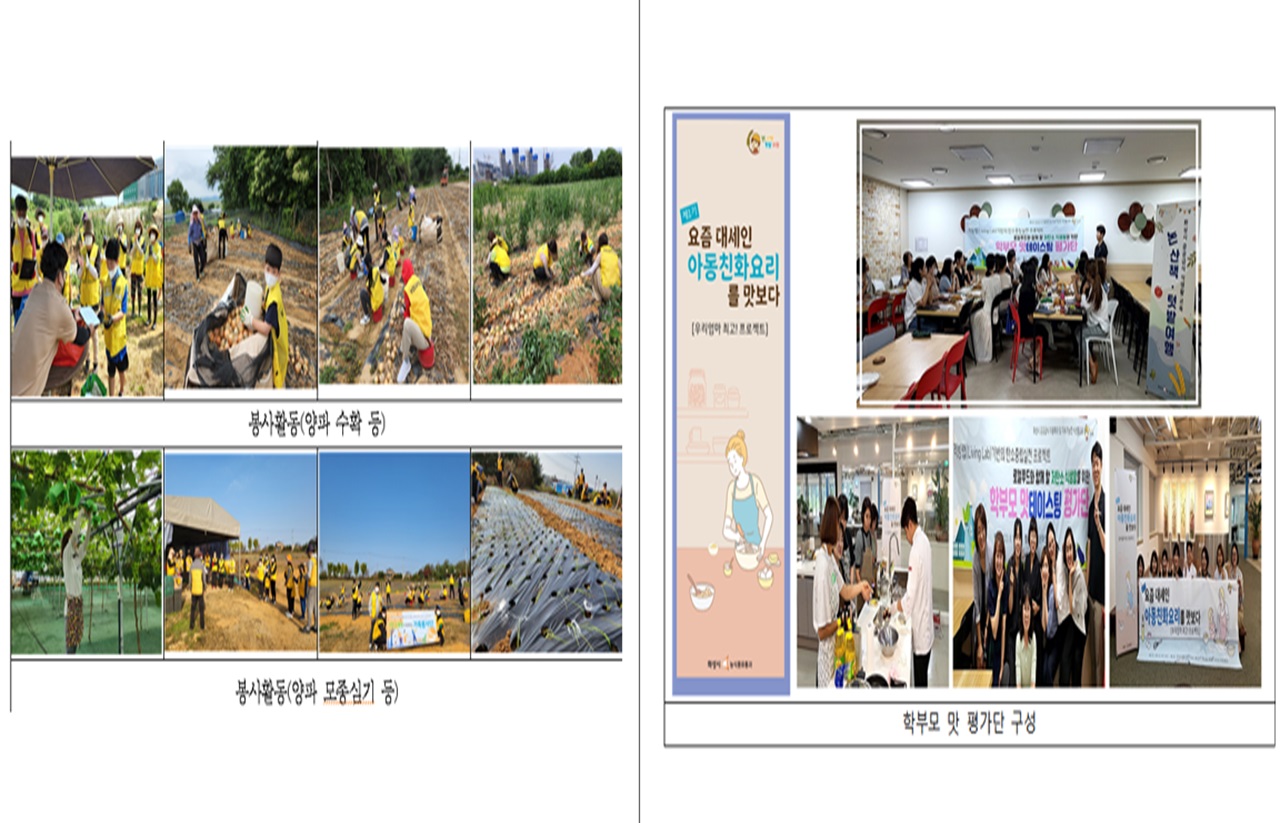 가정에서는 엄마와 아빠의 인식개선을 위한 프로젝트로 학부모 맛평가단이 구성되어 아이들을 위한 식단에 관심을 갖도록 하였습니다.