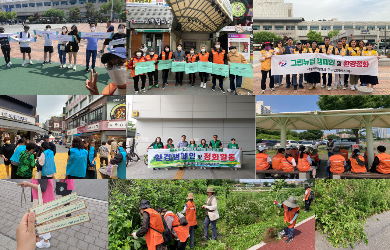 - 구리시자원봉사센터에서는 2021년부터 현재까지 자원봉사단체와 연대하여 그린뉴딜 10대 실천과제 캠페인 및 환경정화 활동을 전개하고 있다.
