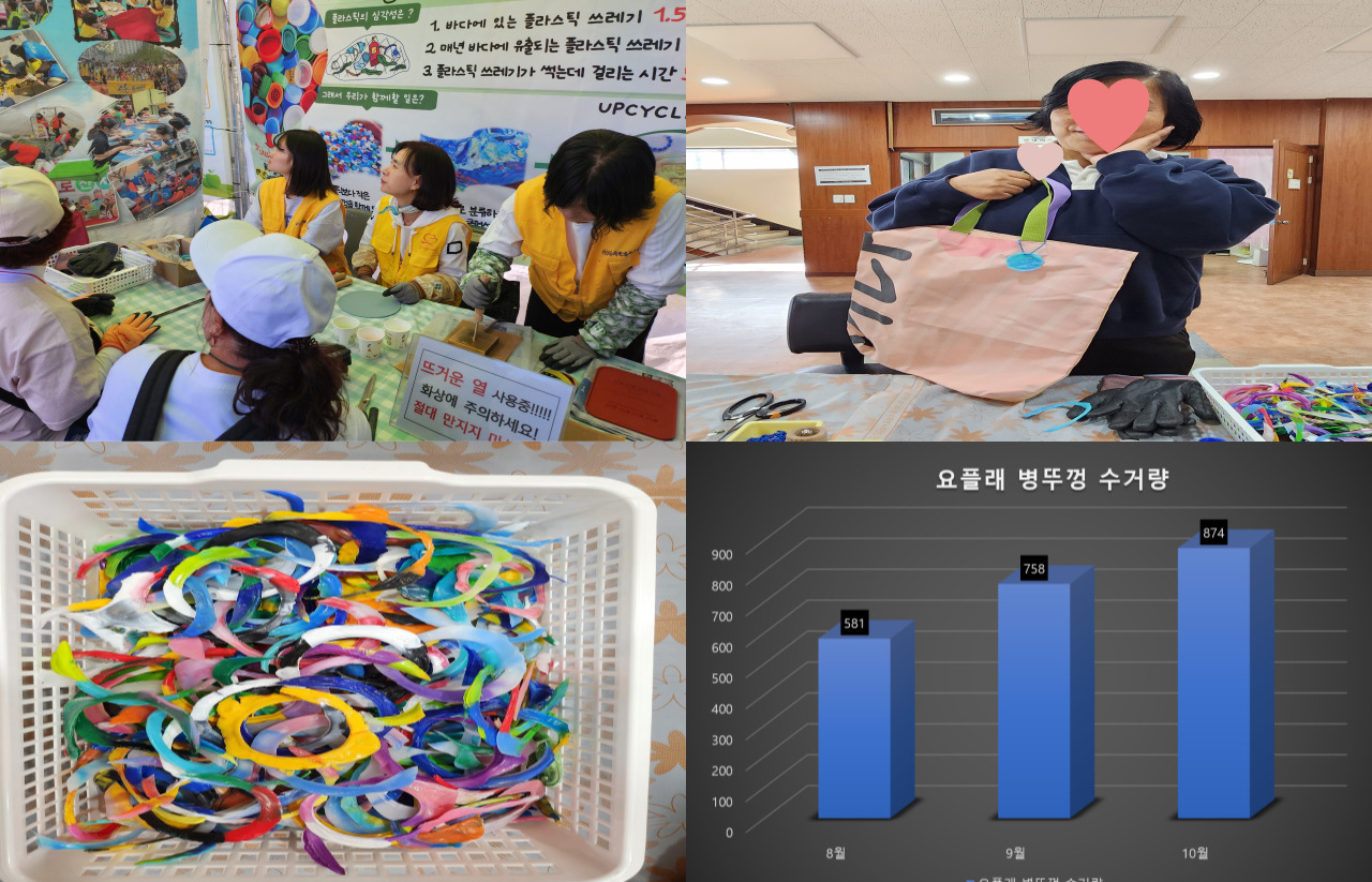배치된 “동자봉 업사이키링 공작소”에서 활용하며, 봉사자들이 재활용이 불가한 이중병뚜겅은 선별하고 색깔별로