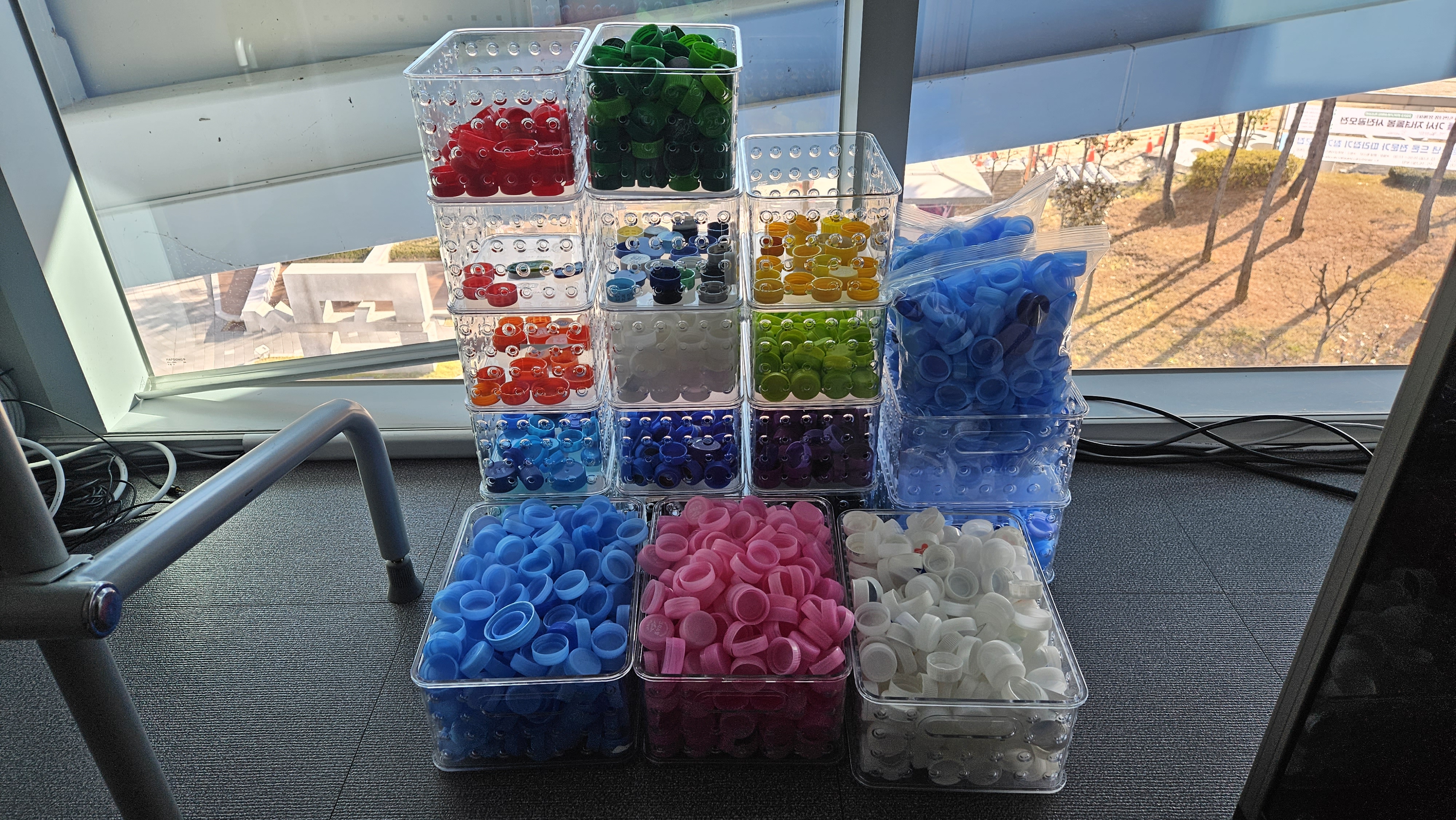 안녕. 나는 플라스틱 병뚜껑이야! 나와 함께 있는 병들은 쌀을 담기도 하고 병을 모아오면 포인트도 받아 사람들이 항상 관심을 주고있어.