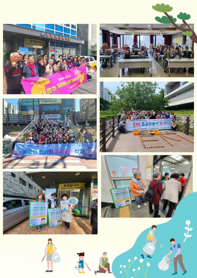 어르신들께서 자발적으로 자신의 재능을 활용하여 지역사회에 헌신하는 모습이 좋은 것 같습니다. 또한 환경에 관한 이슈가 많은 요즘 환경 캠페인을 진행하면서 지역 주민들이 한 번씩이라도 관심을 갖고 볼 수 있도록 인식 개선 부분에서도 긍정적인 영향을 미치는 것 같네요. 단기적인 활동으로 끝내는 것이 아니라 지속적으로 유지되면 좋겠습니다!!!