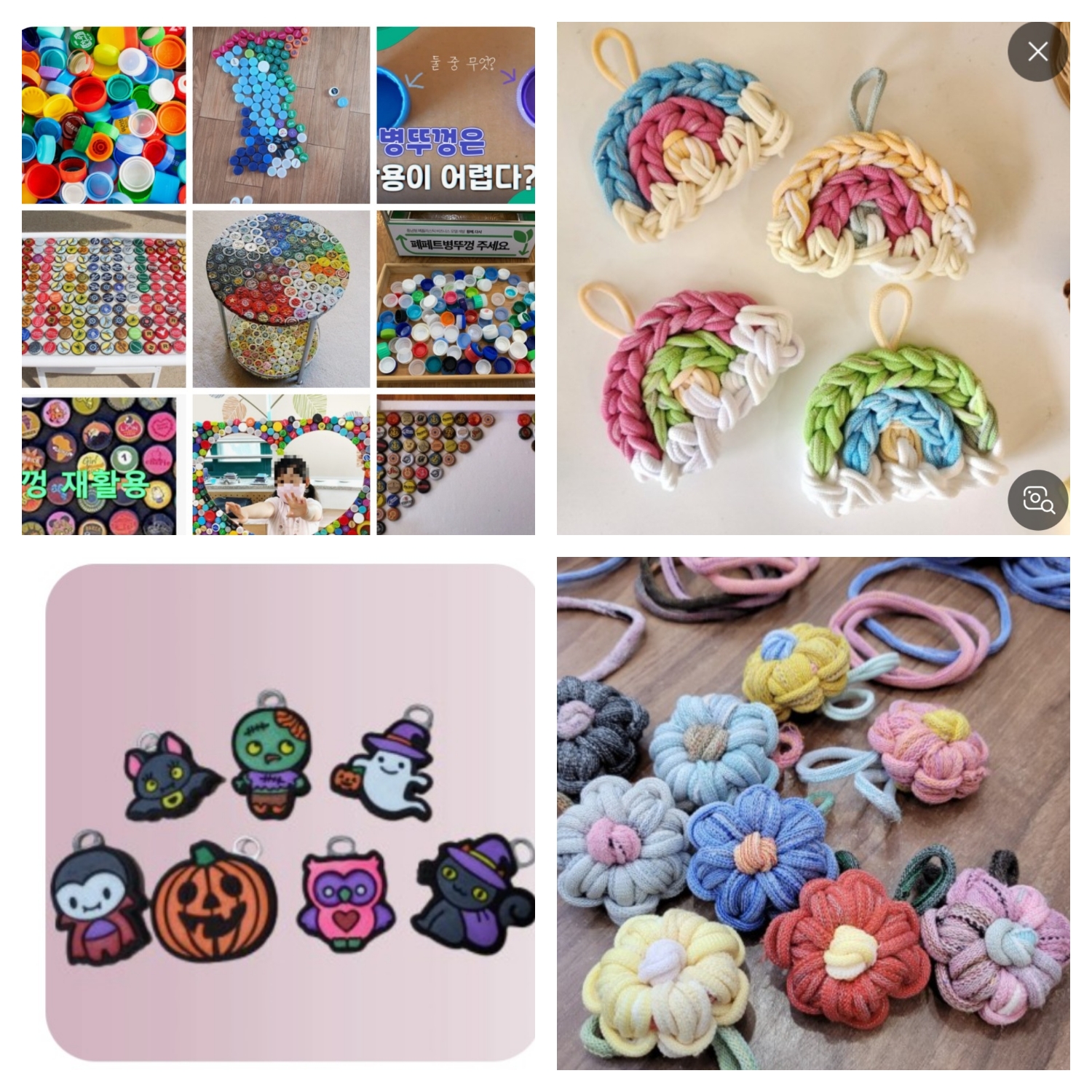●유사한 사례: 탄소 중립 환경 캠페인 일환으로 양말 목 공예, 커피박 공예, PT병 병뚜껑 공예(재활용)가 이루어 지고 있으며,