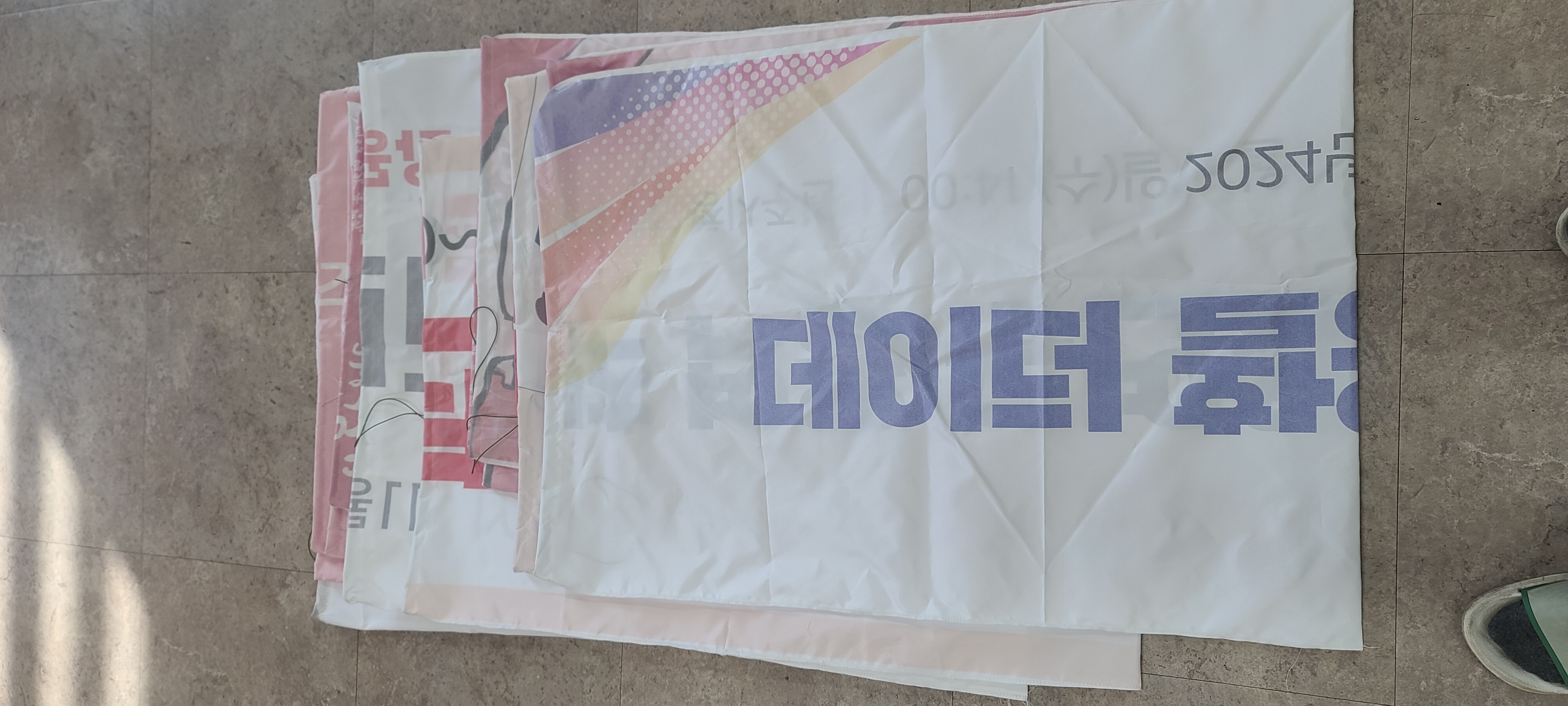 -폐현수막은 일반 섬유와 달리 두께가 두껍고 단단하여 업소용 재봉틀이 필요한 점, 재활용품 부대는 크기가 커야 하고, 입구에 끈을 넣어 묶을 수 있도록 해야 하기 때문에,