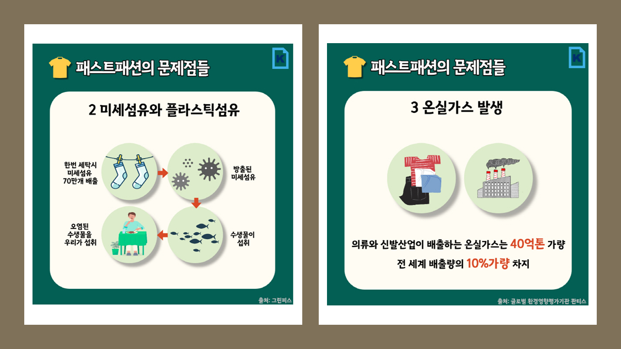 즉, ZARA, GAP, 유니클로, H&M 등 석유에서 뽑아낸 합성섬유 옷이 면(cotton) 옷을 만들 때보다 화석연료 사용량이 많아 면 옷 대비 약 3배에 달하는 온실가스(탄소)를 배출시킨다는 사실을 사람들은 잘 모르고 있더라구요.