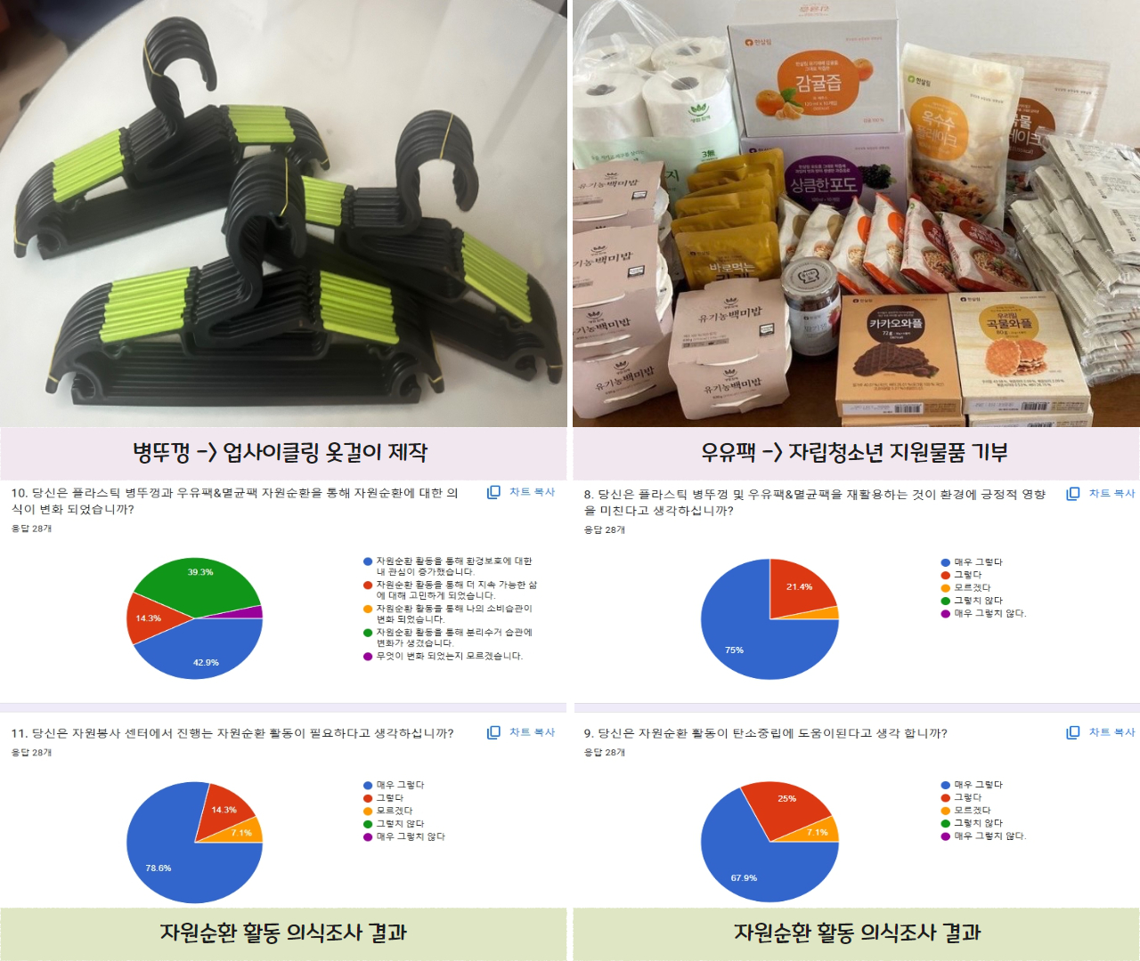 ‘이미 다 하는 거 지금 시작해서 잘 할 수 있을까?’에 대한 의문도 생겼지만, 다른 기관에서 진행하는 병뚜껑 및 우유팩 자원순환 활동 및 리워드 등을 조사하며, 한계점들을 파악해 해결하고자 노력했습니다.