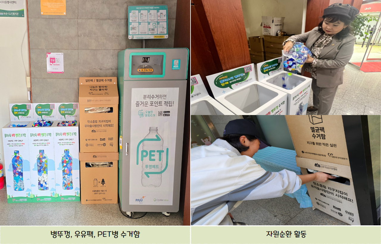 ③ 파주시민 및 자원봉사들에게 플라스틱 병뚜껑과 우유팩 자원순환 활동 방법 안내