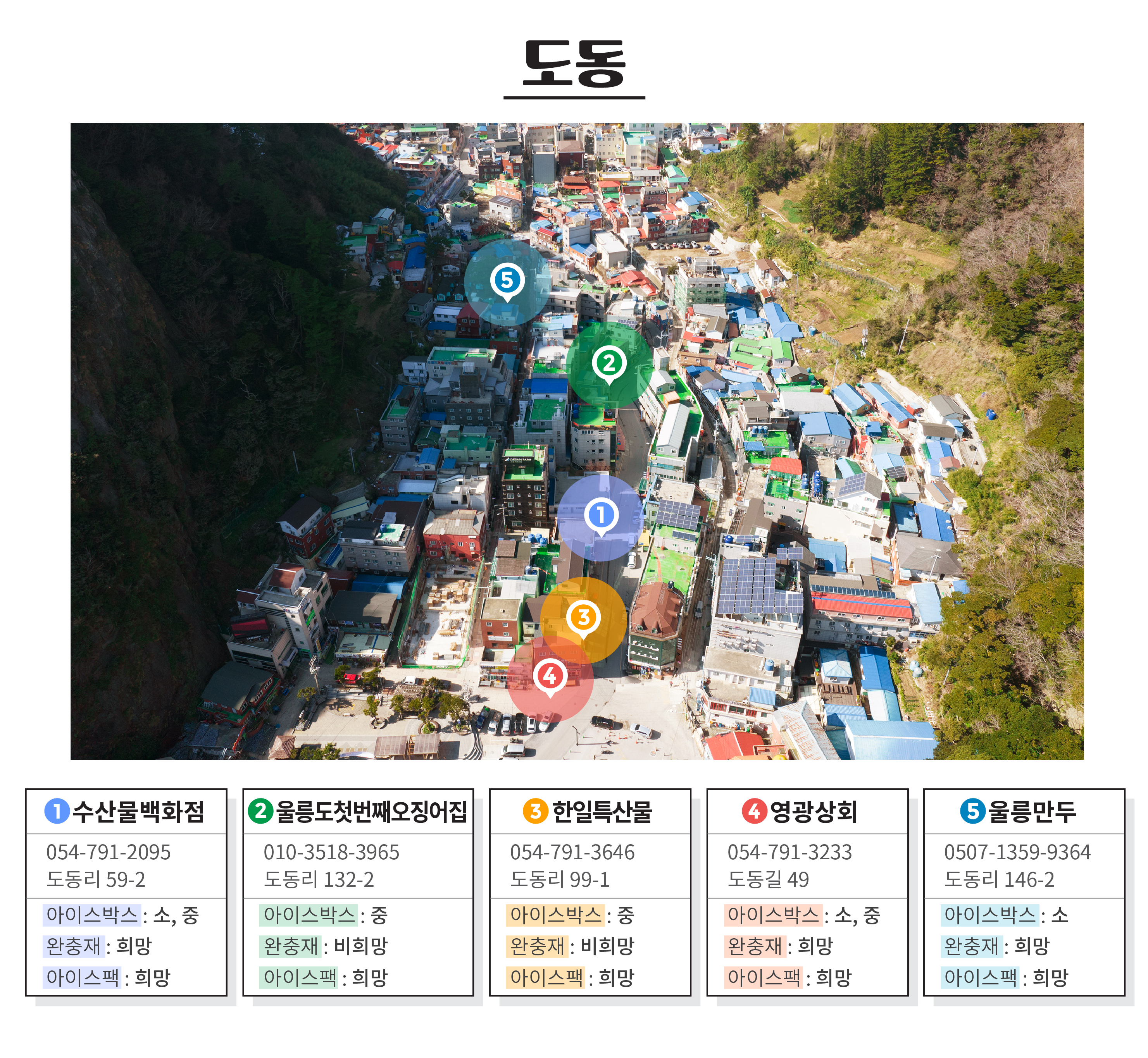 1)제보에는 한계가 있어 울릉군 내 모든 소상공인 중 기념품 및 농수산물 관련 업체 132개를 추린 후 직접 방문과 2차례~3차례 통화를 진행하였습니다.