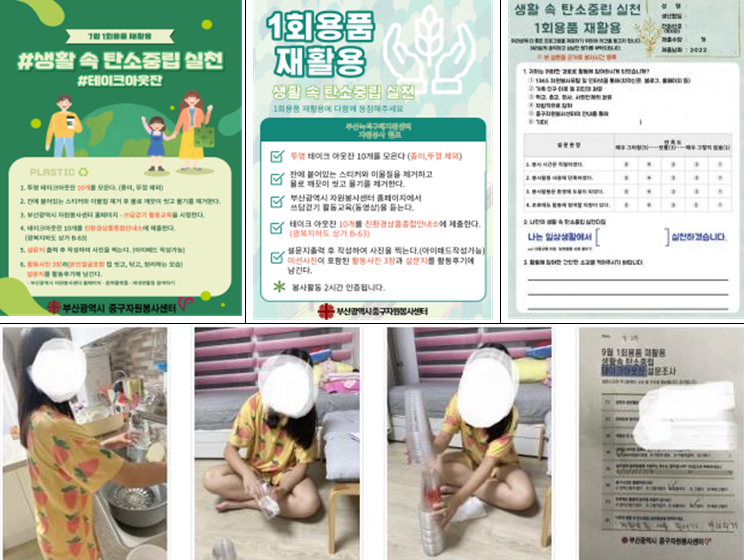 - 중구 자원봉사박람회에 탄소중립 캠페인 사진 공모전을 열어 탄소중립 캠페인 참여에 대한 상징적인 보상(인증서, 기념품 등)을 제공하는 등 탄소중립 활동을 자발적으로 하는 사람들에게 지속적인 참여 동기를 부여함