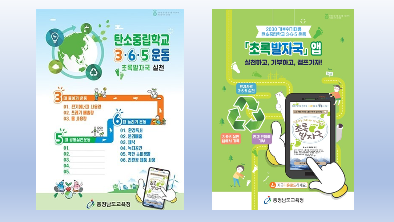 충남교육청에서 개발한 환경교육플랫폼 ‘초록발자국’ 이라는 앱이 있습니다.