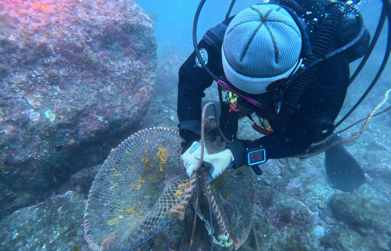 우리는 바다 속의 해양쓰레기를 수거하고, 동시에 폐통발에 갇힌 해양생물을 방생하는 등 해양생태계 보전을 위해 노력하고 있습니다~