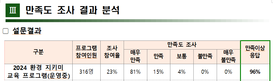 그 결과 교육지원청에서 실시한 만족도 조사에서 참여자의 96% 이상이 교육에 만족한다고 답변을 주었습니다.