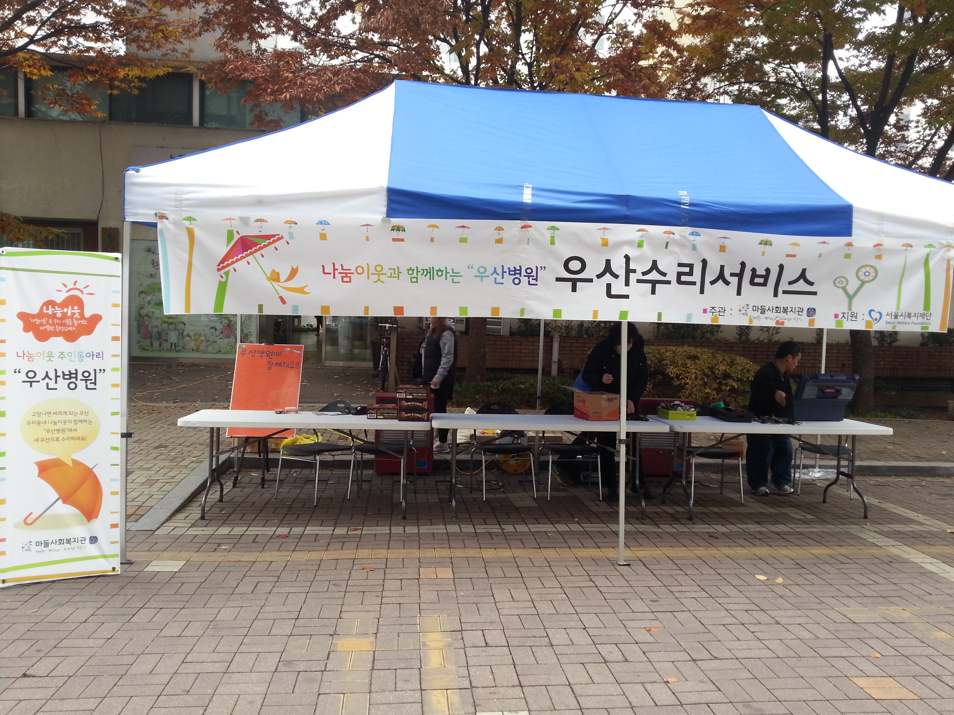 2013년 복지괸에서 임대아파트 독거어르신들 대상으로 고장난 우산을 고쳐드리는 봉사활동을 했었어요. 살이 하나 부러져도 버릴 수 밖에 없다보니 비싼 돈을 주고 사고도 몇번 사용 못하고 그렇다고 아까움에 버리지도 못하는 경우도 종종 있더라구요. 살이 부러지거나 손잡이 고장의 경우 수선이 가능하기 때문에 고쳐서 다시 사용하시도록 했었지요.